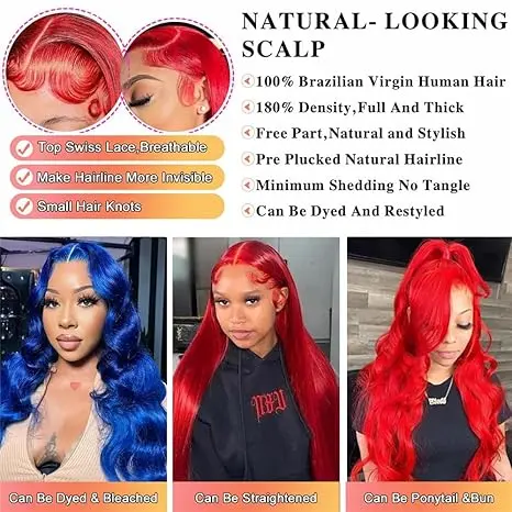 Wig Type:Red 13x6 Body Wave Lace Front Wigs Human Hair