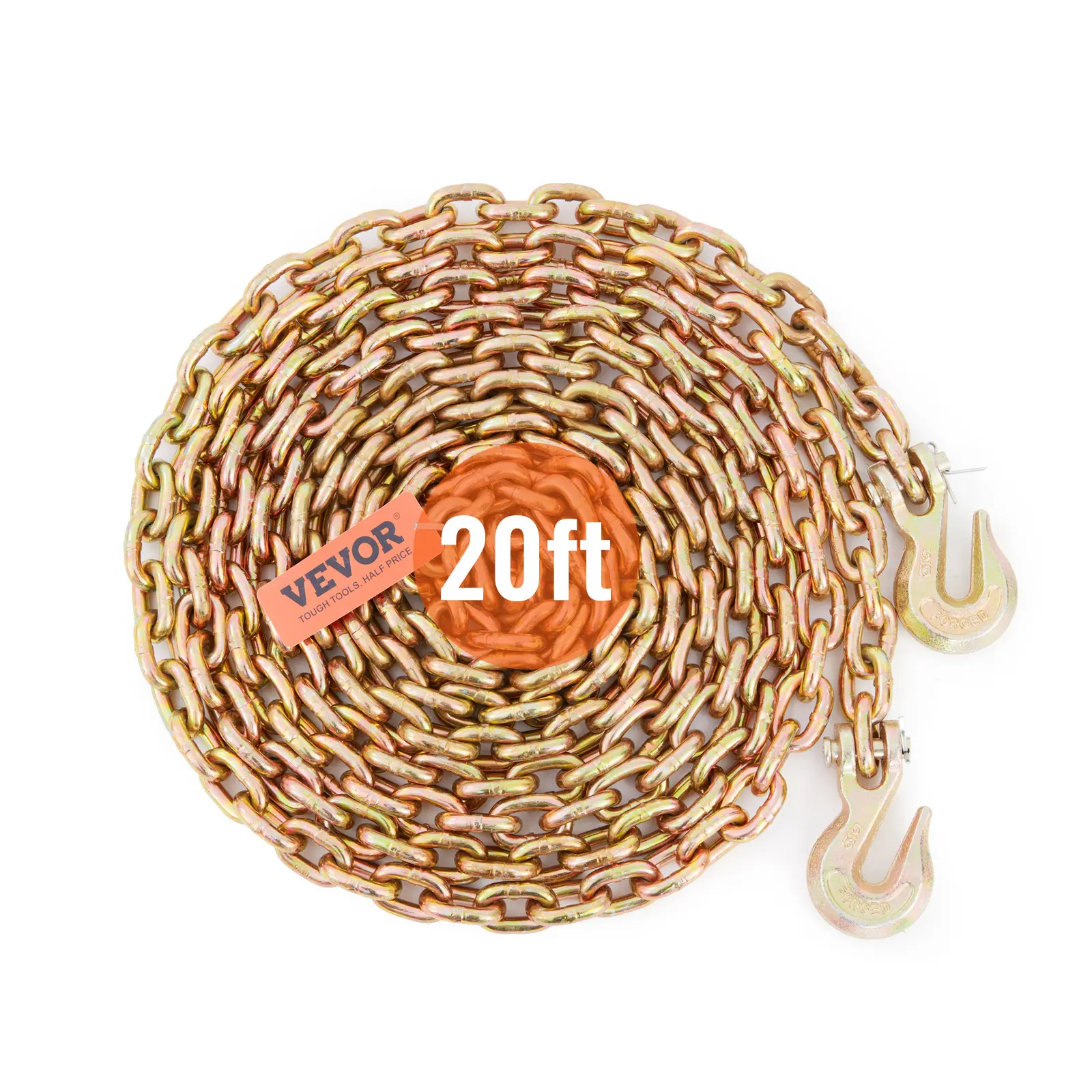 5. VEVOR Transport Binder Chain, 4900lbs Working Load Limit, 5/16''x20' G80 Tow Chain Tie Down with Grab Hooks, DOT Certified, Galvanized Coating Manganese Steel for Dock Factory Construction Site, 2Pack