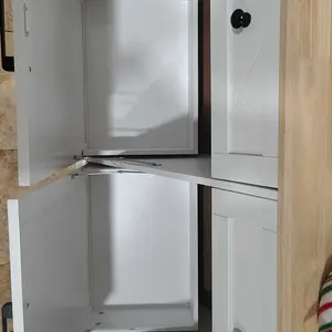 Multi-functionality: As a trash can cabinet, it is not only suitable for the kitchen, but also a perfect choice in the living room, bathroom, corridor, office, etc. The tilting open cabinet door can also store things other than the trash can, like large bags of items such as dog food, make your environment more beautiful.