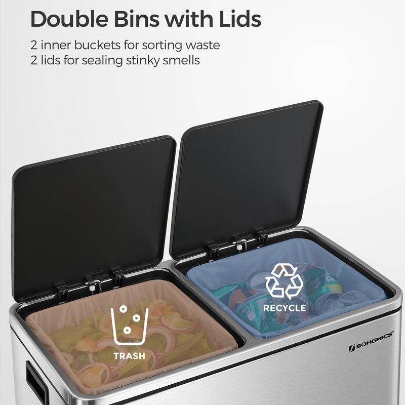Love this garbage can. Soft closing lids that close inside the garbage so that my dogs can’t open up the lid and dig items out. 10/10 recommend I use it for garbage and our can redemption so it’s great.