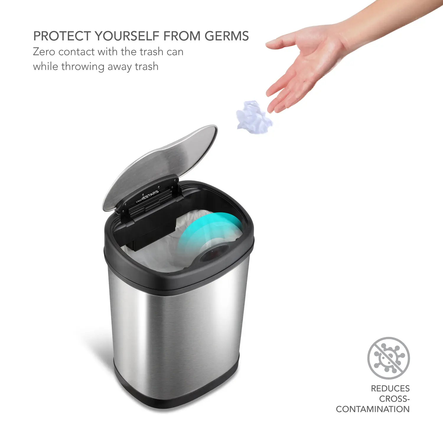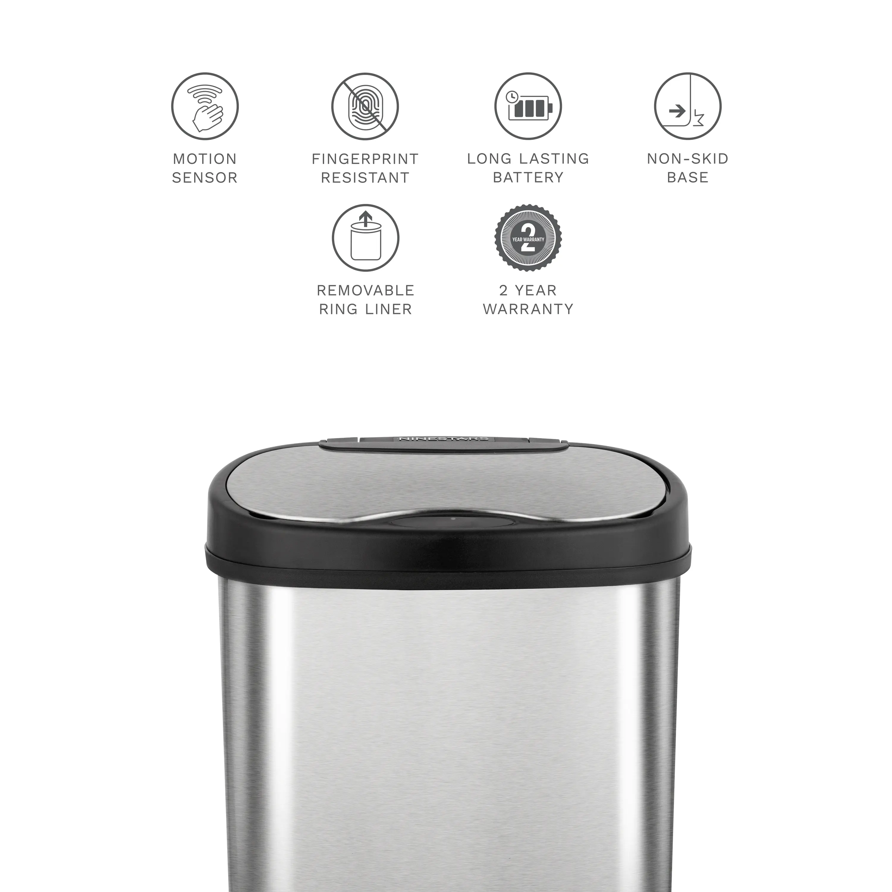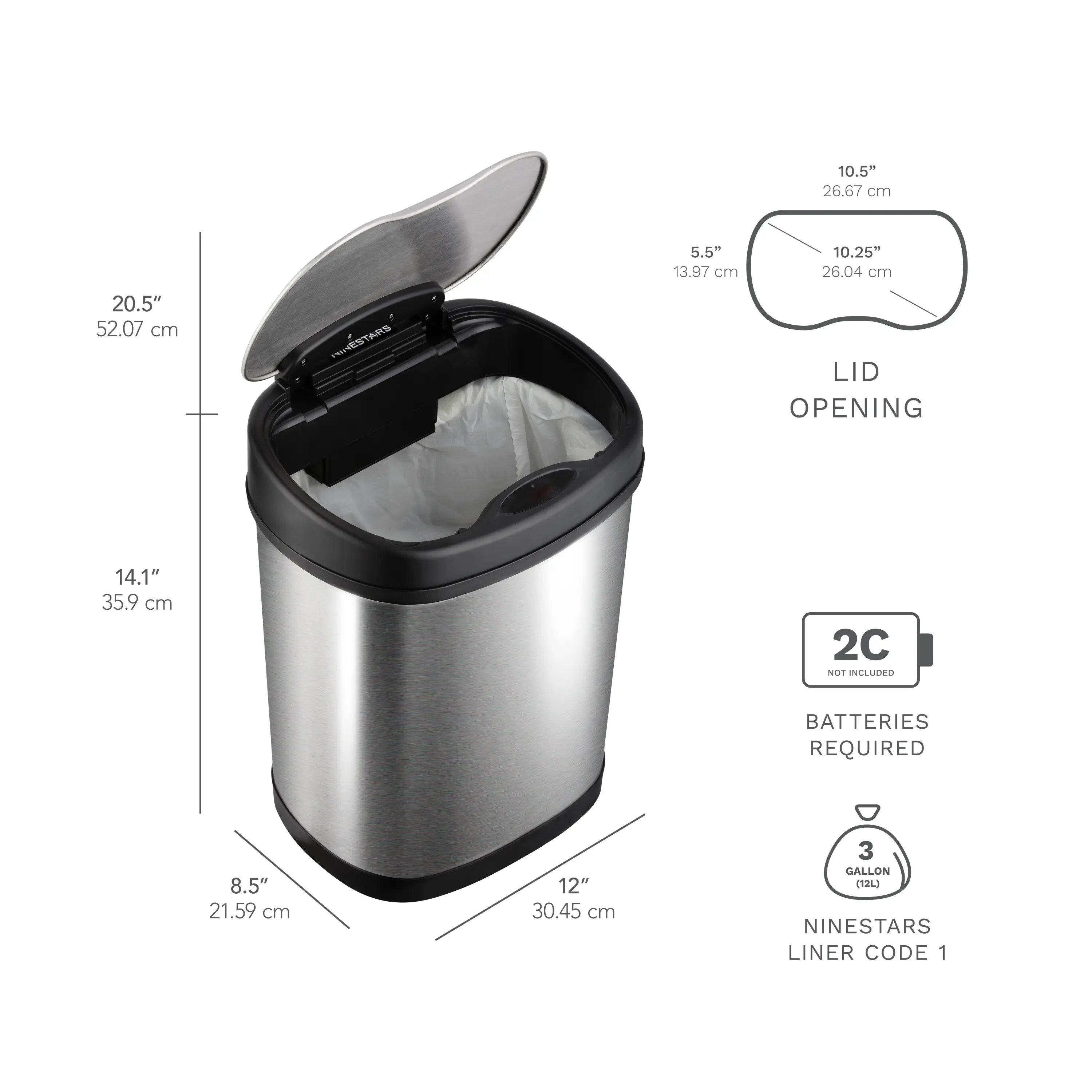 5. NINESTARS DZT-12-13 Automatic Touchless Stainless Steel Trash Bin, Infrared Motion Sensor Trash Can, 3 Gal 12L, (Oval, Black/Silver Lid)