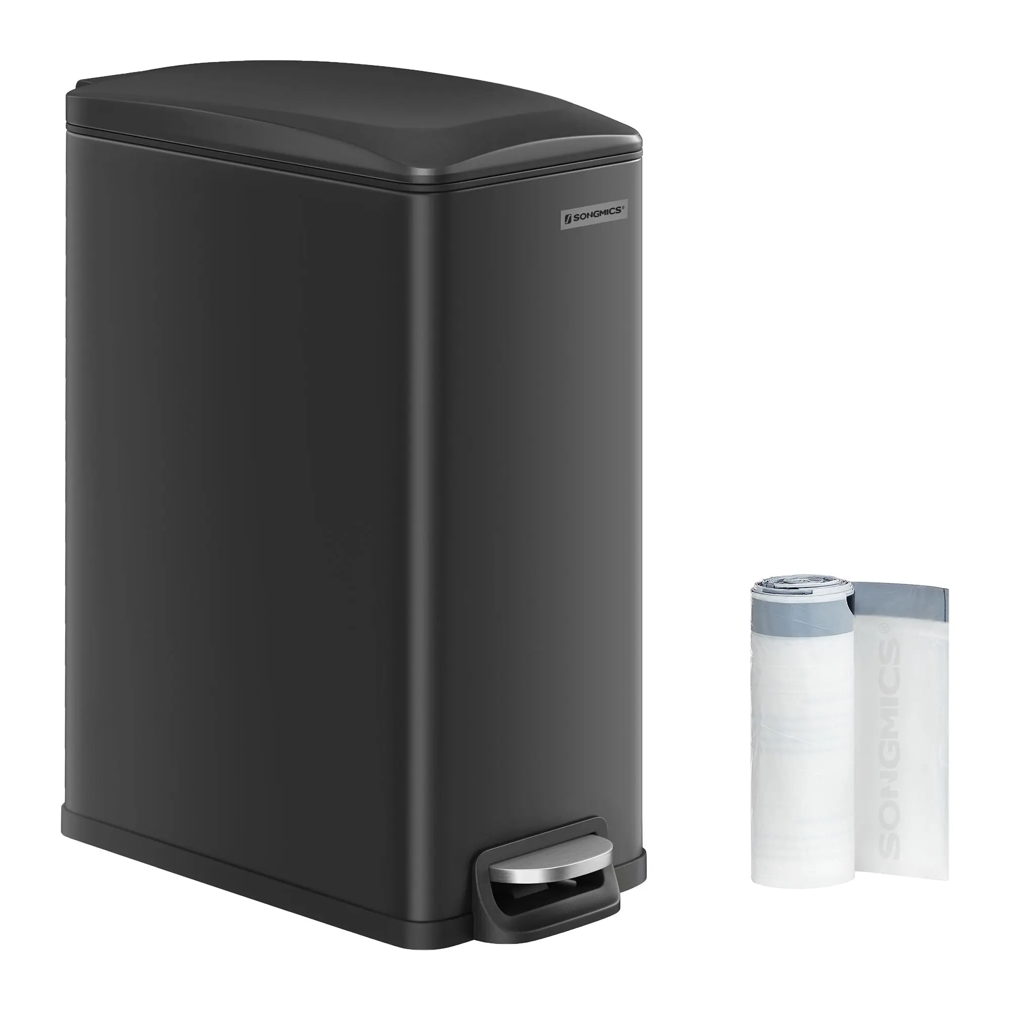 ·[Spacious yet Compact] With its slim, tall profile sized at 11.8”L x 11.8”W x 29.4”H, this 13-gallon trash can maximizes waste volume while occupying little floor space, perfect for kitchens with limited space