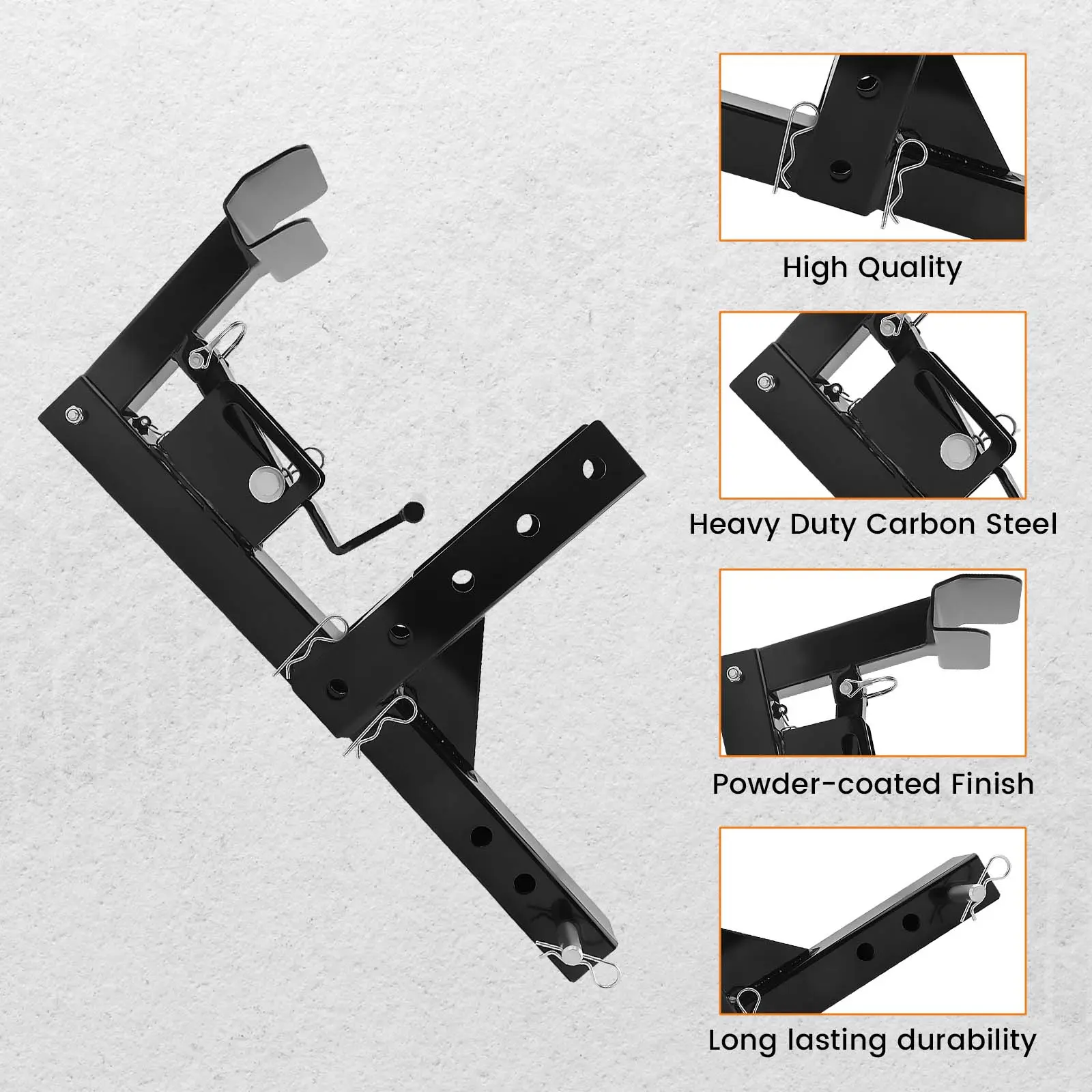 Feature【Perfect Design】Our Can Trash Trailer Hitch come with a adapter that bring the receiver up about 2.5" to 10", raise the can makes the can have enough clearance during grade changes while you have to go up and down steep portions.【Upgrade Generation】The upgrade "hook" part of the transporter that attaches to the tote shaft is 5 inches to fit more trash cans.【Heavy Duty Steel】Heavy-duty carbon steel material makes trash can hauler grabber solid and sturdy to use. This attachment is powder-coated for extra durability and longevity.【Easy to Instal】Put the trash can on the totes, with the simple latching mechanism secures the trash can, and it is off the ground and ready for delivery.This is a much better way to transport your large garbage cans to the end of a long and steep driveway on trash day.