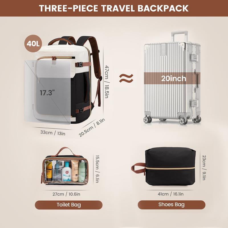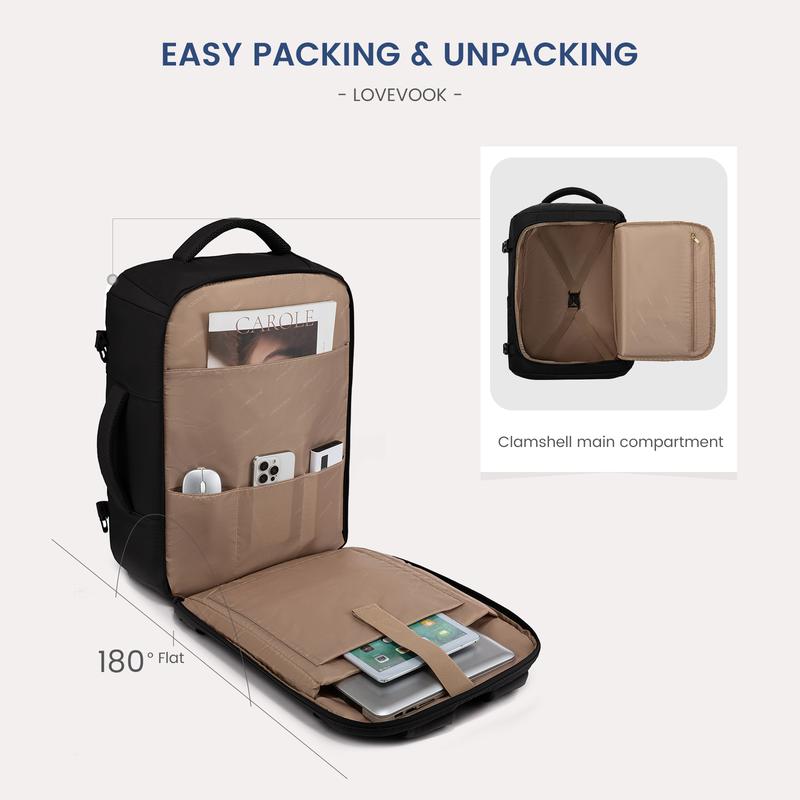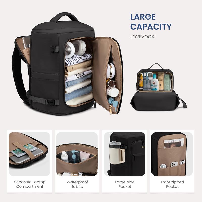 Don’t need anything else for traveling when using this bag. It looks small but when you open it, has plenty of room and pockets.
