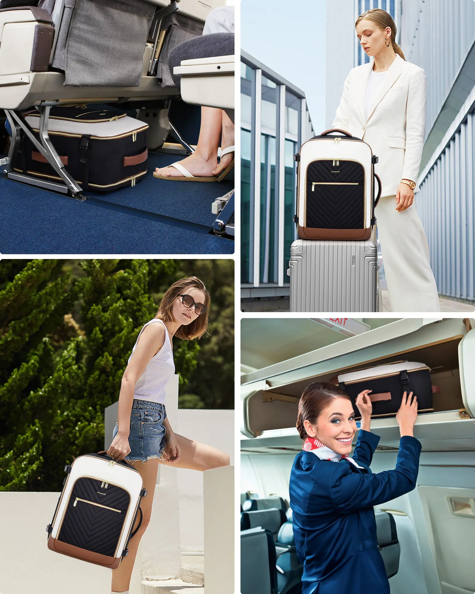 This is a good looking bag! Used on trip and fits right under the seat on plane. Easy to carry or place on suitcase handle. Got all kinds of compliments on the bag as well. Bought one for my sister since you like it. Will carry on all trips! Plenty of storage for traveling.