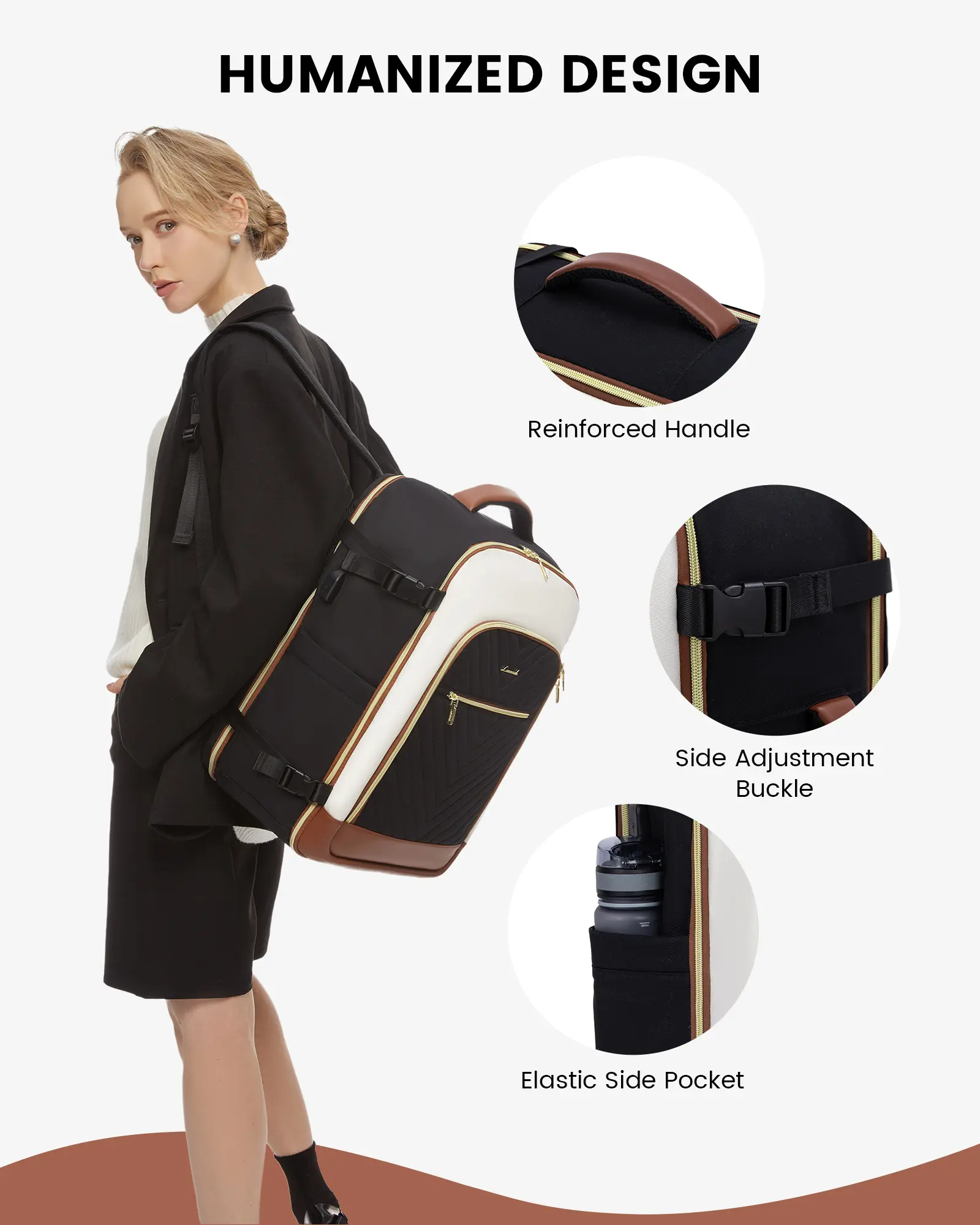 I haven’t had a chance to use it yet but I really like the size and the extra storage bags that come with it for toiletries. Also, all of the pockets for items such as your laptop, phone, passport, etc…make it convenient to take as a carryon on flights. The quality of the bag is superb.