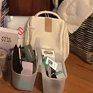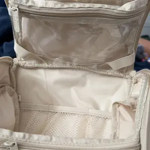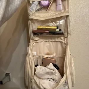 Love how spacious this bag is. Fits skincare and my makeup. Traveling and it fit everything I needed!