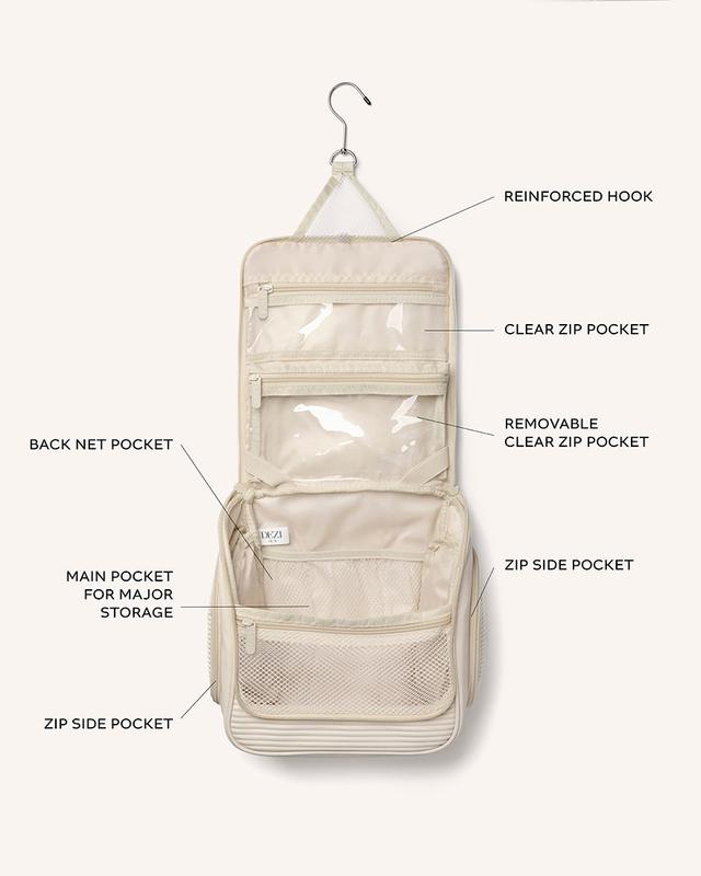 PACK IT ALL really means pack it all! I am able to fit so many items in this bag from my skincare to my hair care. All the compartments and pockets are great. The bag itself is very stylish and I love the color. Taking only one star off because it does feel very heavy but so far it’s sturdy!
