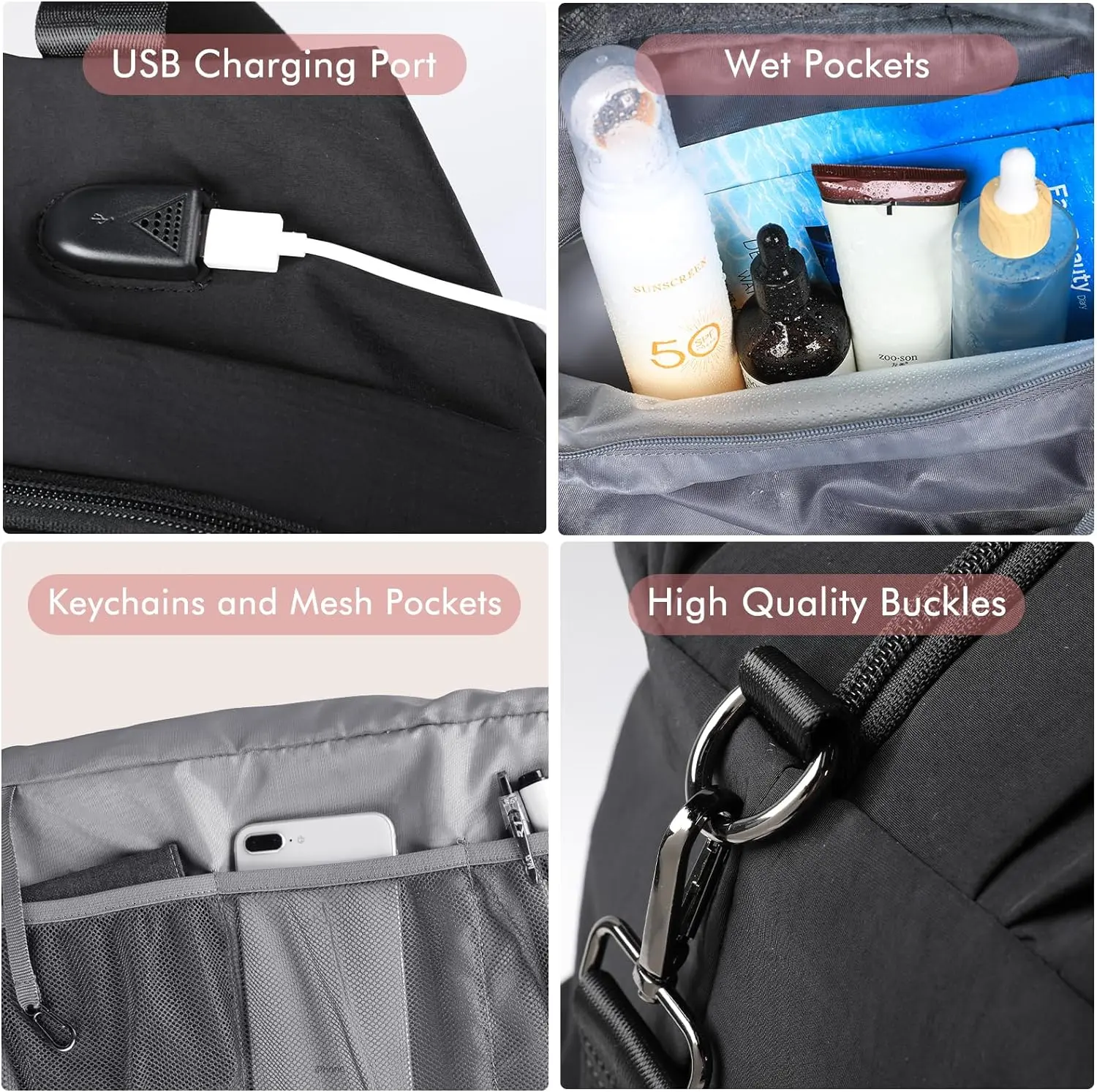 KooKoomia Travel Bag with Shoe Compartment USB Charging Port, Yoga Mat Pocket, Trolley Sleeve, Carry on Overnight Hospital Duffel Weekender Bag,Gym Bag  for Women, BlackKooKoomia Travel Bag with Shoe Compartment USB Charging Port, Yoga Mat Pocket, Trolley Sleeve, Carry on Overnight Hospital Duffel Weekender Bag,Gym Bag  for Women, BlackKooKoomia Travel Bag with Shoe Compartment USB Charging Port, Yoga Mat Pocket, Trolley Sleeve, Carry on Overnight Hospital Duffel Weekender Bag,Gym Bag  for Women, Black