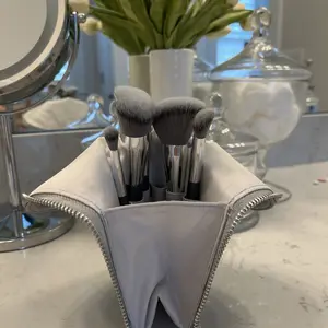 The pouch is the perfect size and flexible enough to fit in small spaces. The design of the brushes is beautiful and of course the softness is amazing. 🤩