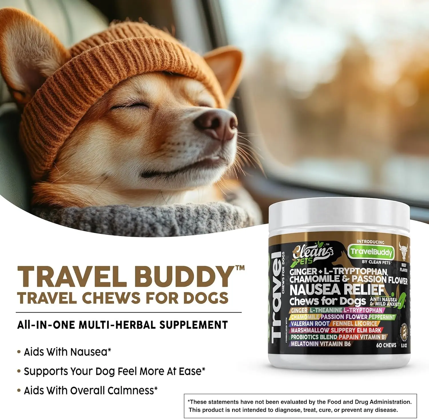 ·Eases Travel : Formulated with L-Tryptophan and Valerian Root to calm nerves.