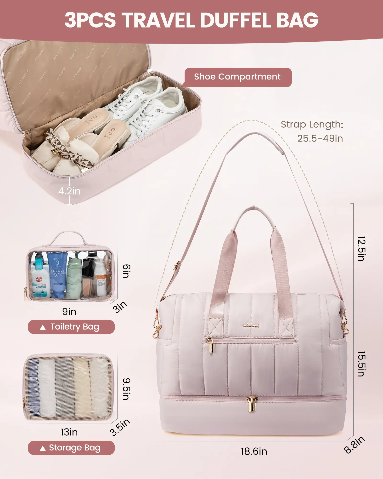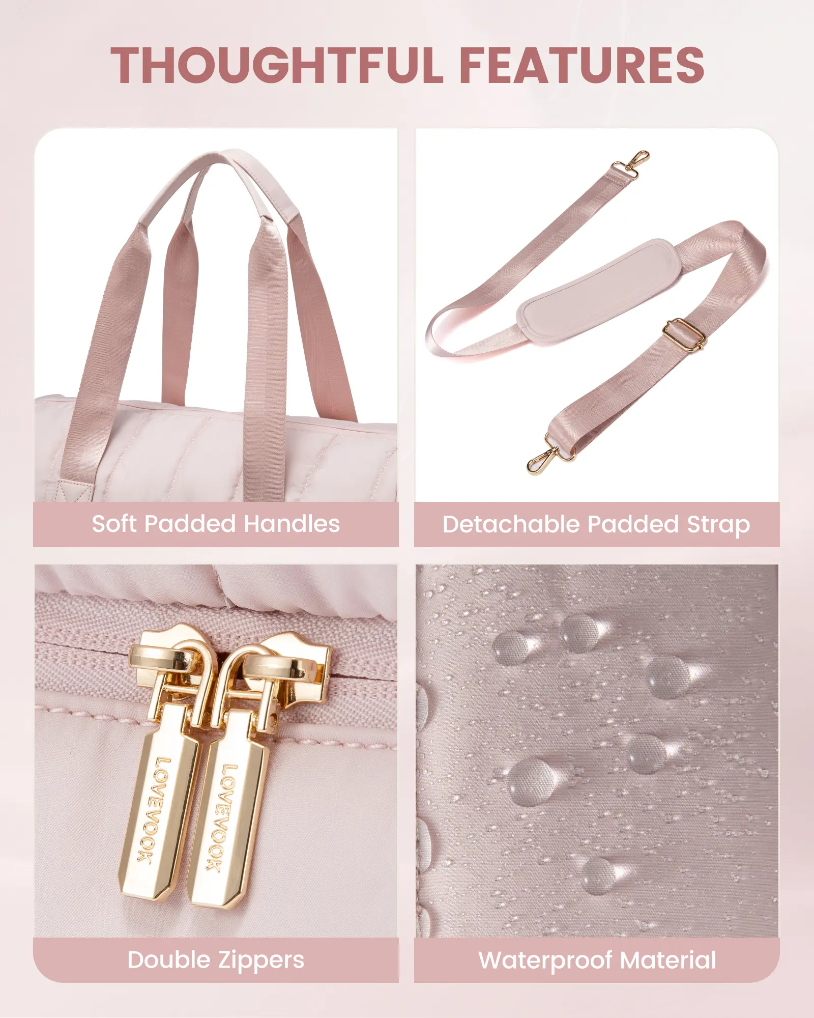 【LOVEVOOK Travel Bag】: Made from durable Taslon, this bag is soft, lightweight, and comfortable to carry. The sturdy zippers and stitching ensure long-lasting use, combining style and function seamlessly.