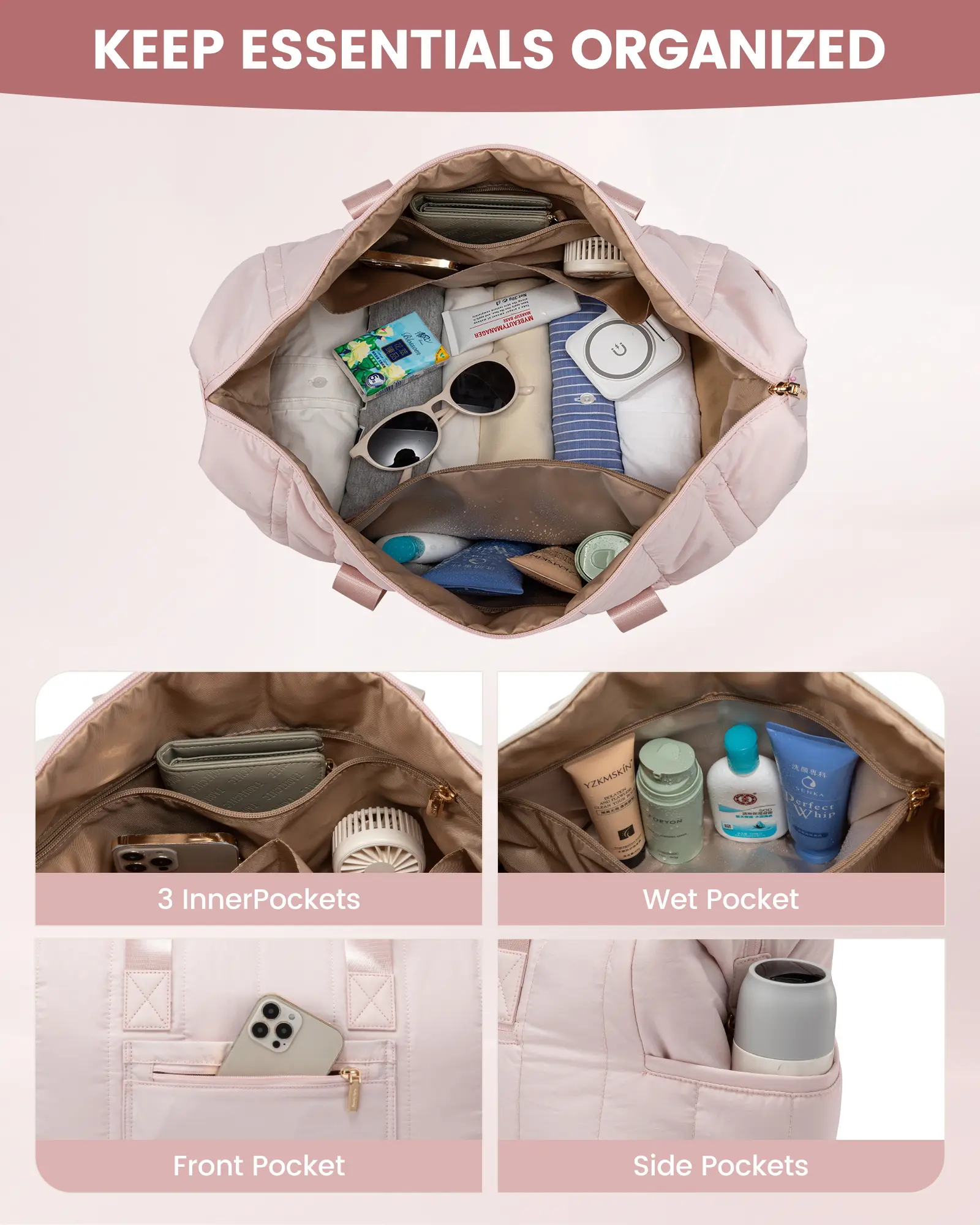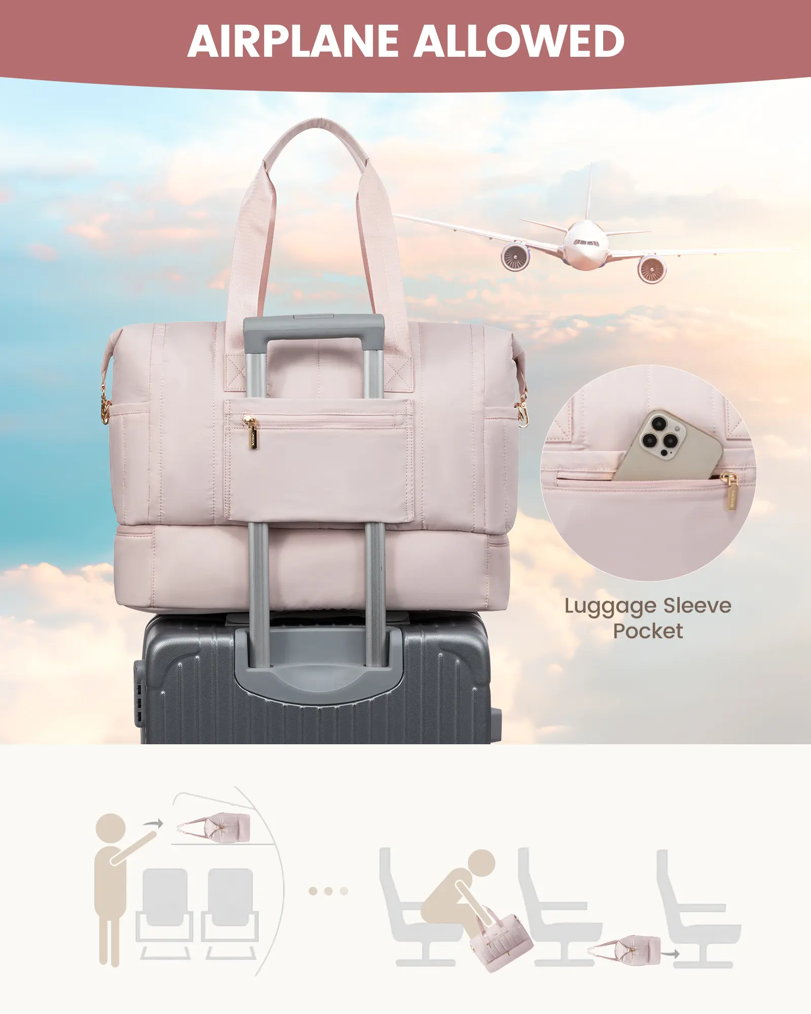 【Carry-On Friendly】: Meets international carry-on size requirements, fitting easily in overhead bins or under seats. Features a trolley sleeve for attaching to luggage and a back zip pocket for quick access to your phone, ID, or passport, making it perfect for weekend getaways.