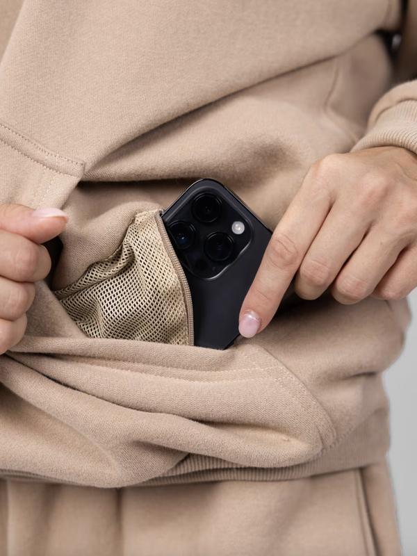 This hoodie is so comfortable The pockets that are for travel, from someone who is constantly losing stuff because I put it in my sweatshirt and it falls out at the airport This is going to be a lifesaver The pockets aren’t shown well in photos so I hope these help the mesh pocket is inside the main