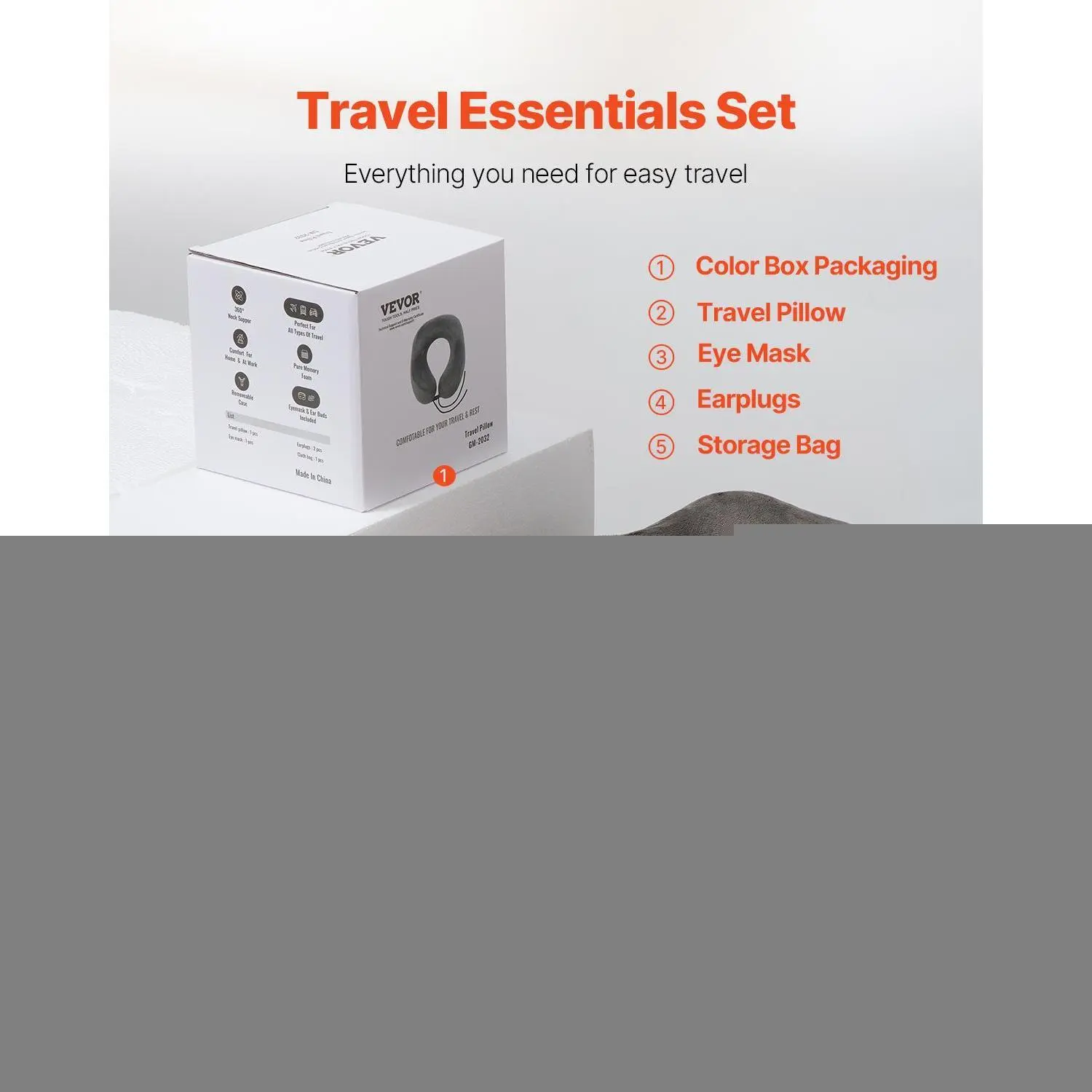 • Travel Essentials Set: Includes a neck support travel pillow, earplugs, an eye mask, and a storage bag. Whether for short trips or long flights, this set provides comprehensive care and convenience. Packaged in a gift box, it's the ideal choice for personal use or as a thoughtful gift for friends and family.