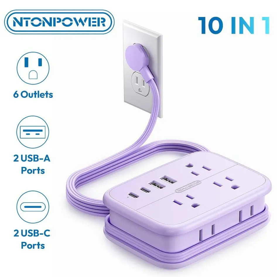 The NTONPOWER Travel Power Strip is a versatile and compact solution for travelers, offering ample power and efficient storage. It is ideal for international travel, business trips, vacations, and various settings, including cruise ships and hotels. With its ultra-flat wall plug and 45-degree right-angle design, it saves space and ensures compatibility with standard US plugs.