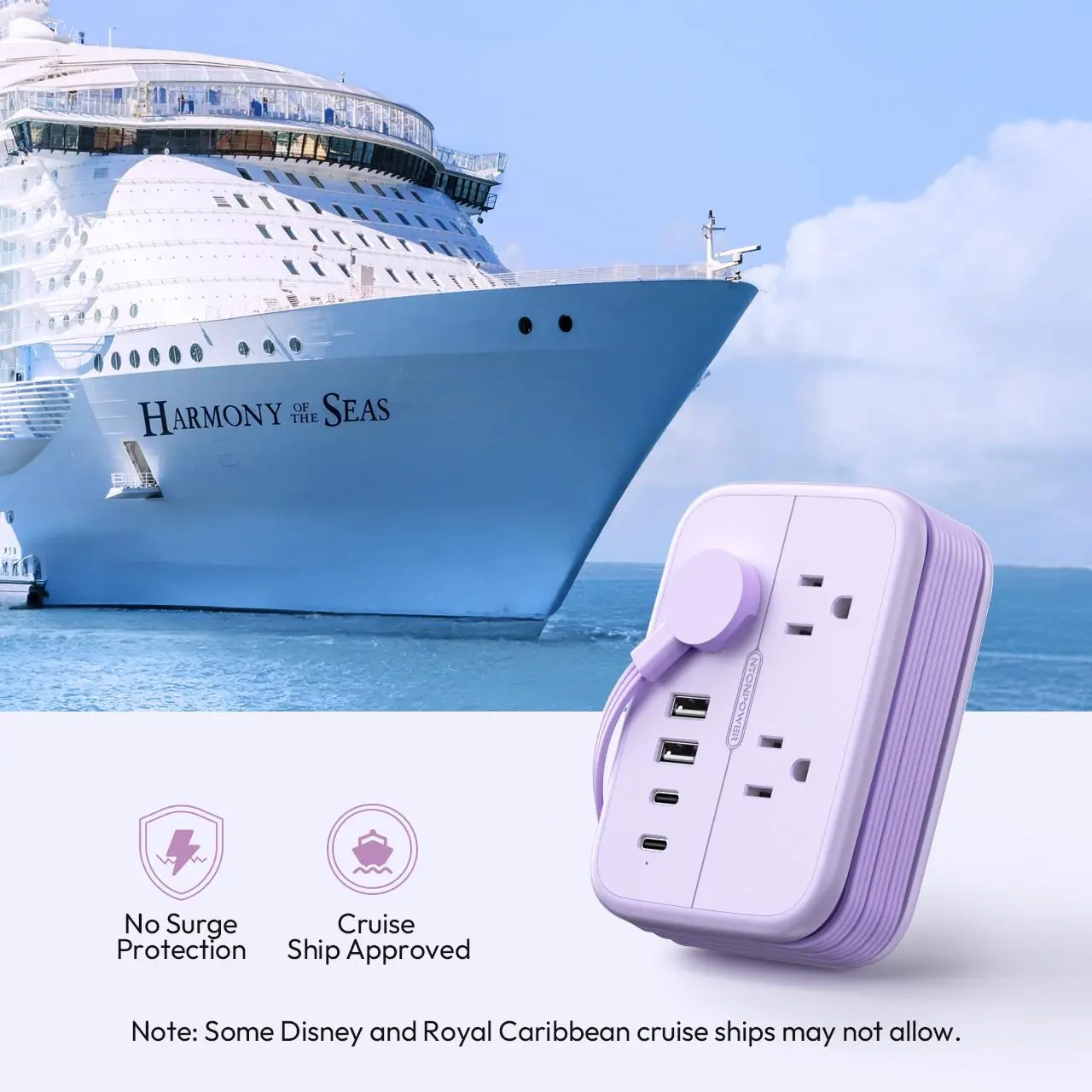 ·No Surge Protection: Note: This travel power strip does not have surge protection.