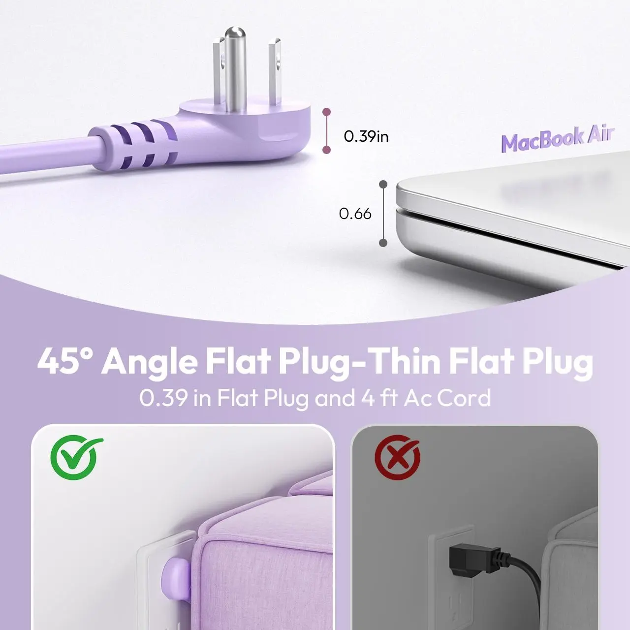 Its 4-foot retractable extension cord wraps neatly around the body, making packing a breeze—no tangled wires in your suitcase or backpack. Plus, the flat 45° right-angle plug saves space behind furniture or tight wall outlets, so your hotel room setup stays neat and tidy.