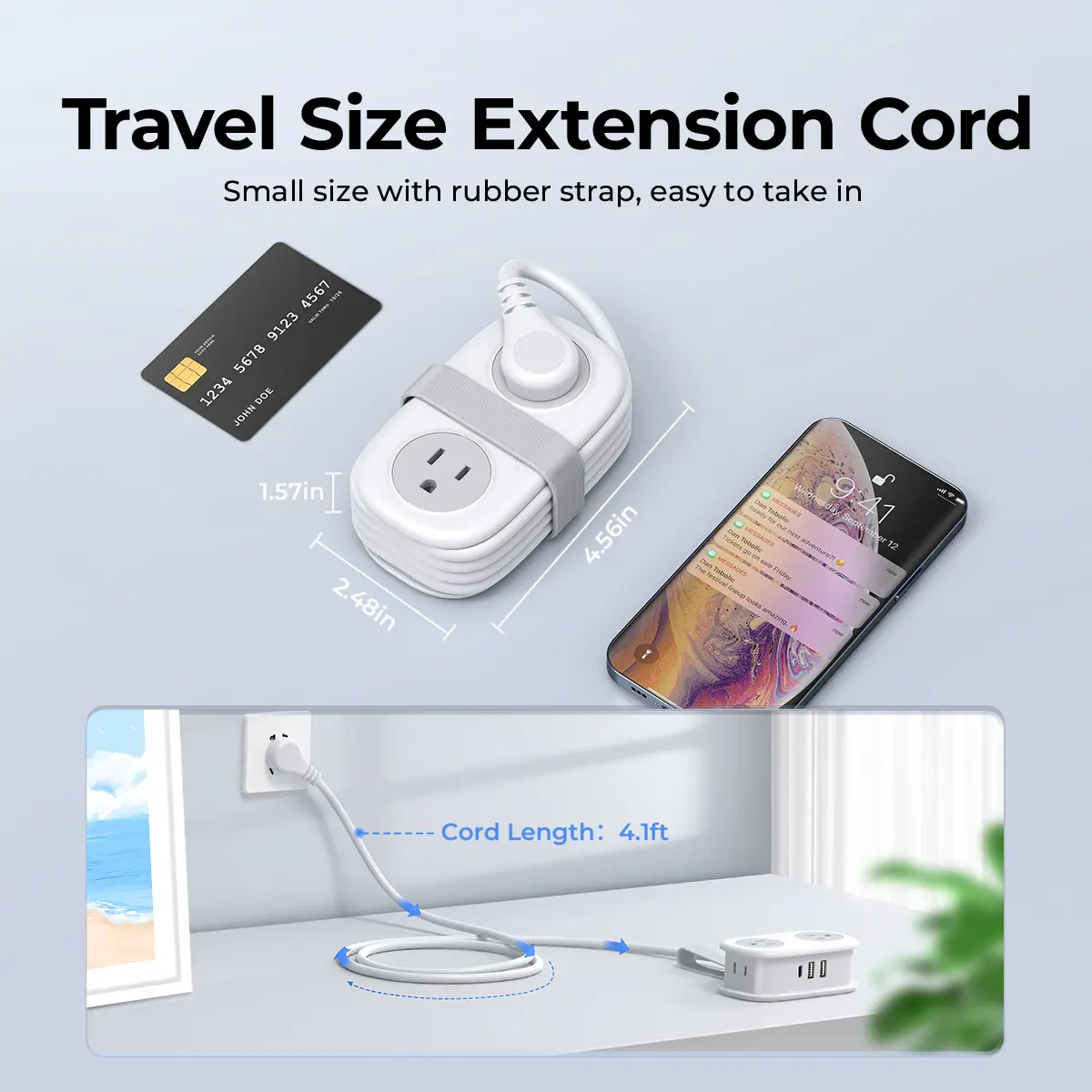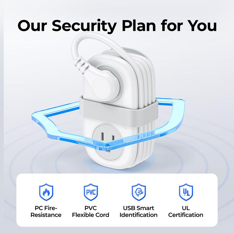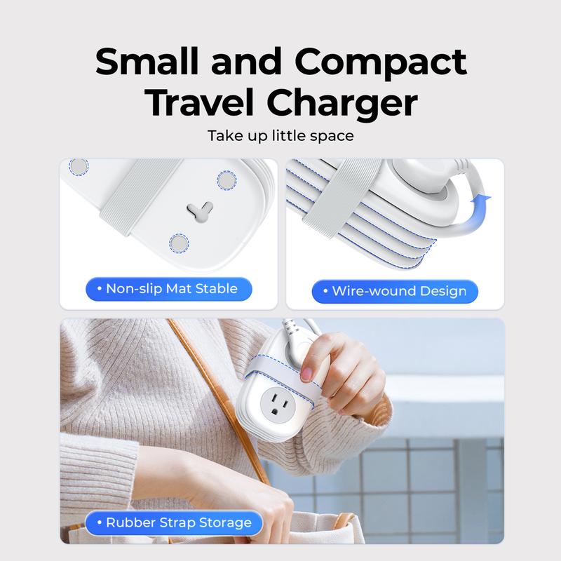 The mini power strip measures 4.0*2.4*1.6 inches, which is smaller than a mobile phone and can be easily put into any package. It is ideal for carrying during business trips and vacations. It can charge all your travel essential devices and allow you to Travel with ease.