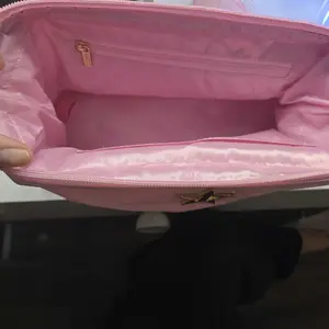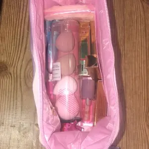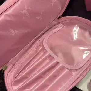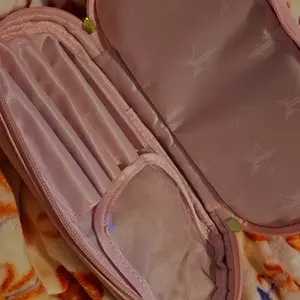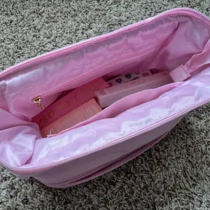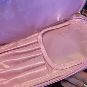 It's such a cute little baby pink makeup bag there is even a place at the bottom to place your makeup brushes