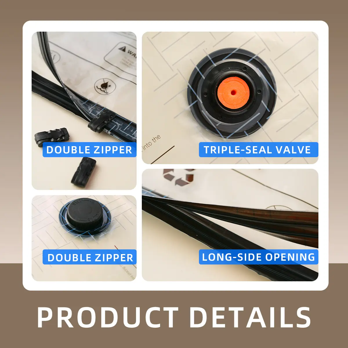 Made from PA&PE materials, these bags are strong, leak-proof, waterproof, and moisture-resistant. They ensure your items stay protected during storage. The 25W pump delivers powerful suction for quick air removal. It supports repeated use, perfect for vacations, business trips, or home organization.