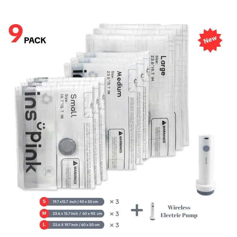 ![[Space Saver] Inspink Travel Vacuum Storage Bag Set with 25W Wireless Rechargeable Pump - 3-Size Bags for Clothes, Sweaters, Carry-On Suitcases, Backpacks & Luggage Organizers, Lightweight, Space-Saving Compression Bags [Space Saver] Inspink Travel Vacuum Storage Bag Set with 25W Wireless Rechargeable Pump - 3-Size Bags for Clothes, Sweaters, Carry-On Suitcases, Backpacks & Luggage Organizers, Lightweight, Space-Saving Compression Bags](https://p19-oec-general.ttcdn-us.com/tos-maliva-i-o3syd03w52-us/e7f4d3a0c09c443da5c367ee2caf5f84~tplv-fhlh96nyum-origin-jpeg.jpeg?dr=12178&t=555f072d&ps=933b5bde&shp=a3510d86&shcp=6ce186a1&idc=useast5&from=2739998086)