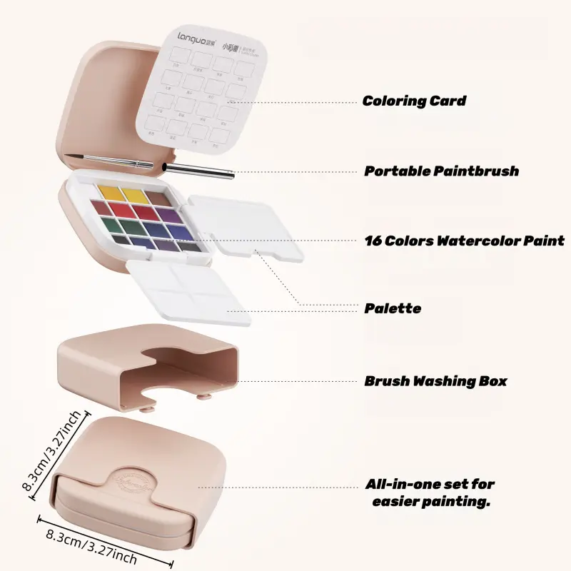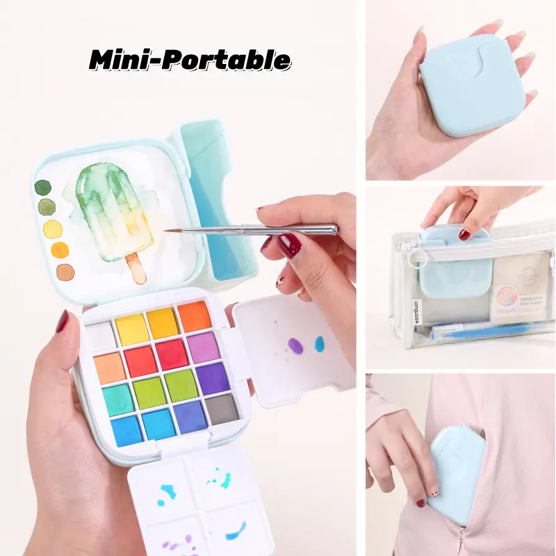 【Compact Travel Kit】: Lightweight and portable, this watercolor set is designed for artists on the go, easily fitting into any travel bag.
