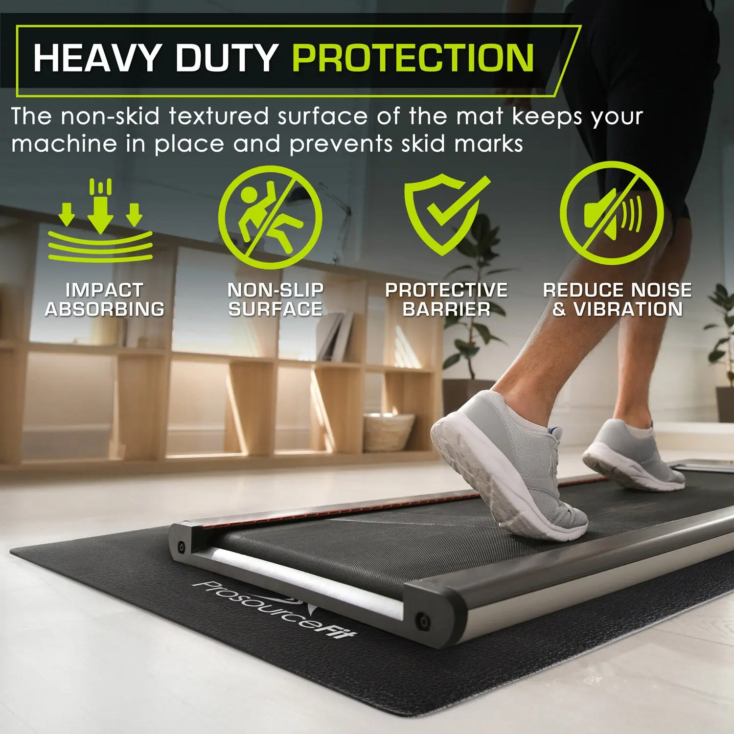 The ProsourceFit Treadmill Mat is a must-have for any home or gym with floors you want to protect from scratches, dents and wear and tear from heavy workout equipment. The high-density 4mm mat helps to absorb noise, vibration, and impact while you’re running, walking, or rowing. The lightly textured surface reduces slipping and can also be used under weight benches or racks. Durable PVC material is low-maintenance and easy to wipe clean with a damp cloth. It’s perfect for garages, basements, or wherever you exercise at home.