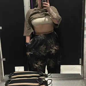 i loved the black camo sweats so much i had to get them in the tan, they’re so cute and comfortable! I got a size medium for a baggier fit. They are 100% cotton so I am air drying them instead of putting them in the dryer to preserve the color, elastic waistband and the fit. I’m 5’4 and 133lbs