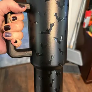 I wasn't a tumbler girly, but my old water cup needed to retire. Saw a sale on this item and took the plunge. I'm obsessed with the locking straw that prevents spills. The black cat print is right up my alley. I did nick a design using my car's cupholder, but found a little cover. Highly recommend.