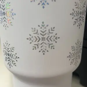 Have only been handwashing the cup due to the outer design. I’ve noticed pieces of the iridescent snowflakes coming off. Disappointed that the snowflake design is coming off even after gentle washing, though it says it is dish washer safe - I wouldn’t dare try