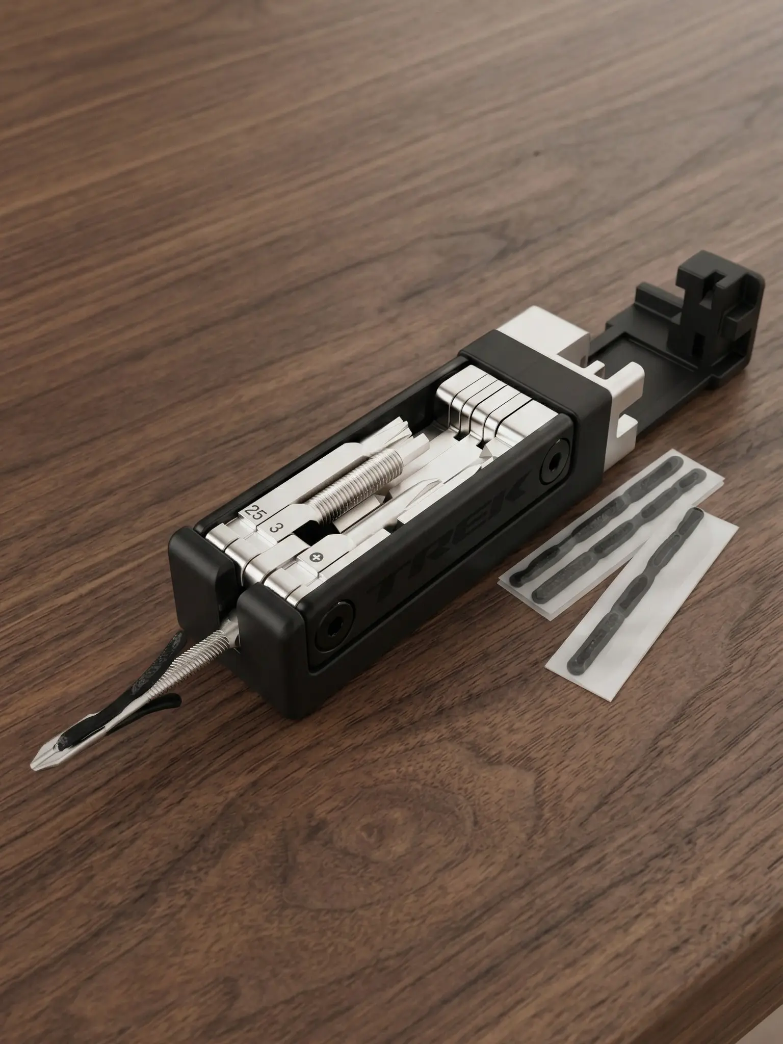 The Trek Pro BITS Multi-Tool packs all of your essential riding tools into one compact kit, including a tubeless tire reamer. Plus it gives you the storage you need for tire plugs and a quick-link.
