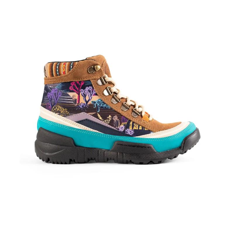 Rugged + artful just might be the perfect duo.  Paying homage to the spectacular California Mojave Desert and its rich landscape, this design features Joshua trees, jackrabbits, desert tortoise, roadrunners, and other curious sand creatures. Our water-resistant Trekk boots prove the perfect backdrop for this moody Mohave design.