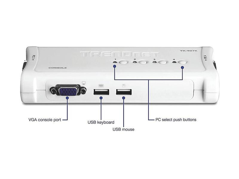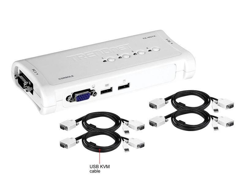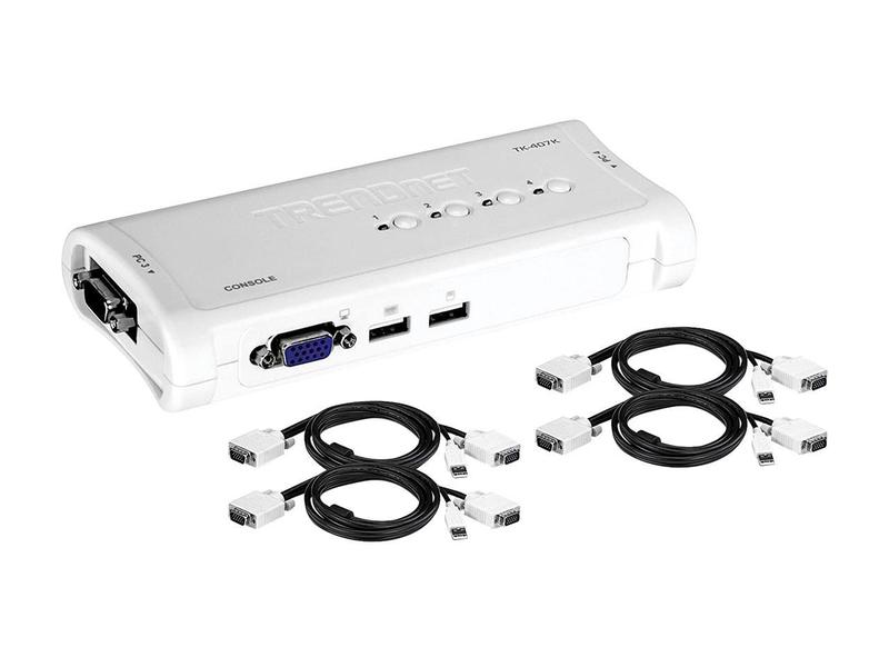5. TRENDnet 4-Port USB KVM Switch Kit, VGA And USB Connections, 2048 x 1536 Resolution, Cabling Included, Control Up To 4 Computers, Compliant With Window, Linux, and Mac OS, White, TK-407K