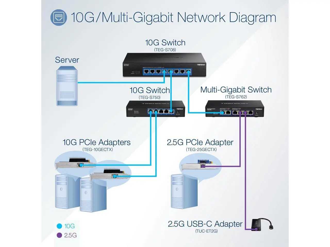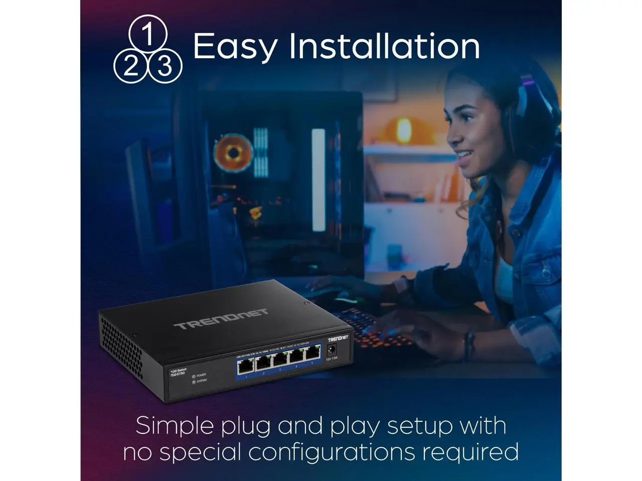 Gigabit network connections. This versatile unmanaged 10G switch also supports 2.5G /5G-BASE-T connections for faster