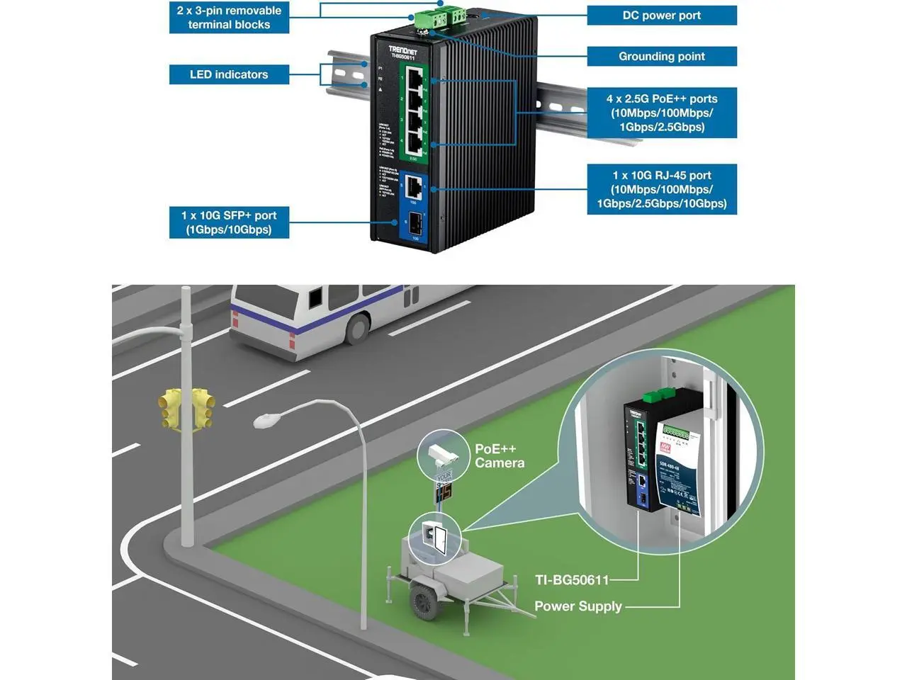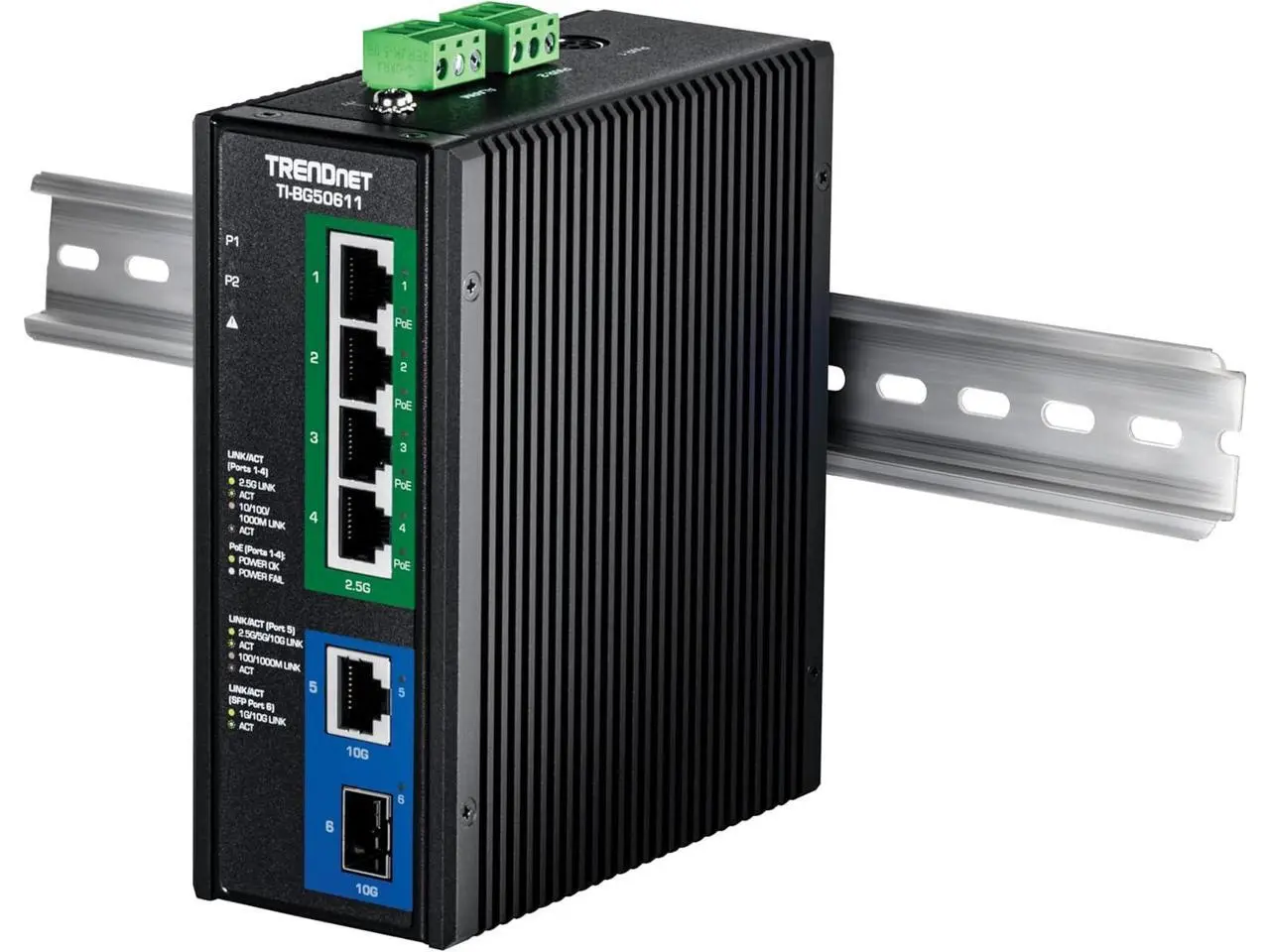 5. TRENDnet TI-BG50611 6-Port Industrial 2.5G PoE++ DIN-Rail Switch with 10G Ports