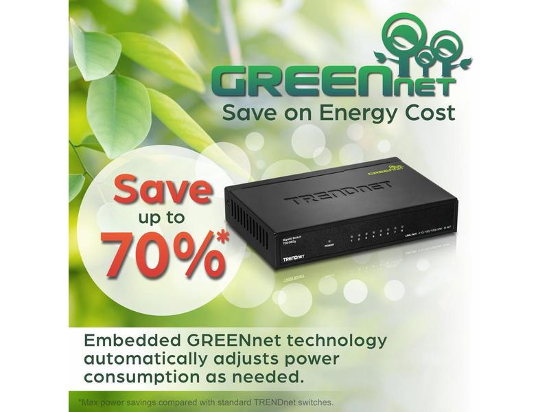5. TRENDnet 8-Port Gigabit GREENnet Switch, Ethernet Network Switch, 8 x 10-100-1000 Mbps Gigabit Ethernet Ports, 16 Gbps Switching Capacity, Metal, Lifetime Protection, Black, TEG-S82G