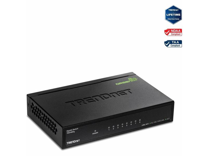 TRENDnet 8-Port Gigabit GREENnet Switch, Ethernet Network Switch, 8 x 10-100-1000 Mbps Gigabit Ethernet Ports, 16 Gbps Switching Capacity, Metal, Lifetime Protection, Black, TEG-S82G