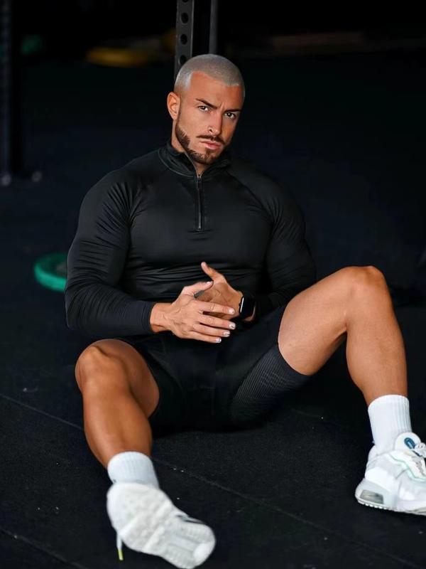 Men's Trendy Half-Zip Gym Shirt, Long-Sleeve Breathable Fabric, Ideal for Crossfit, Hiit, and Casual Wear, Comfortable Gym Top #breathablemenswear #athletictops #longsleevedshirt #pilatesoutfitideas #athleticwearhaul #athleticshirts #athleticclothing #cottonactivewear #womensgymclothes #mensgymwear