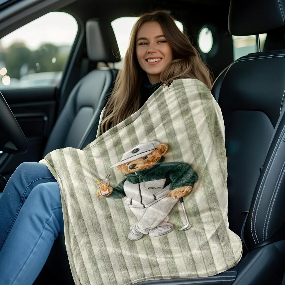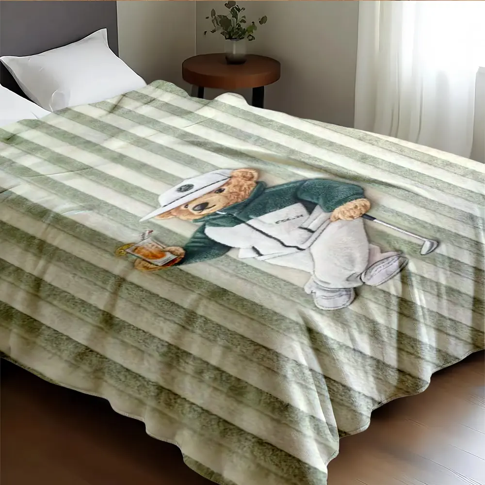 Trendy Cool Bear Pattern Blanket, Ultra-Soft Flannel Nap Blanket, Shawl Blanket, Small Cover Blanket, Lightweight Cozy Blanket, Perfect for Sofa Bed Office Travel