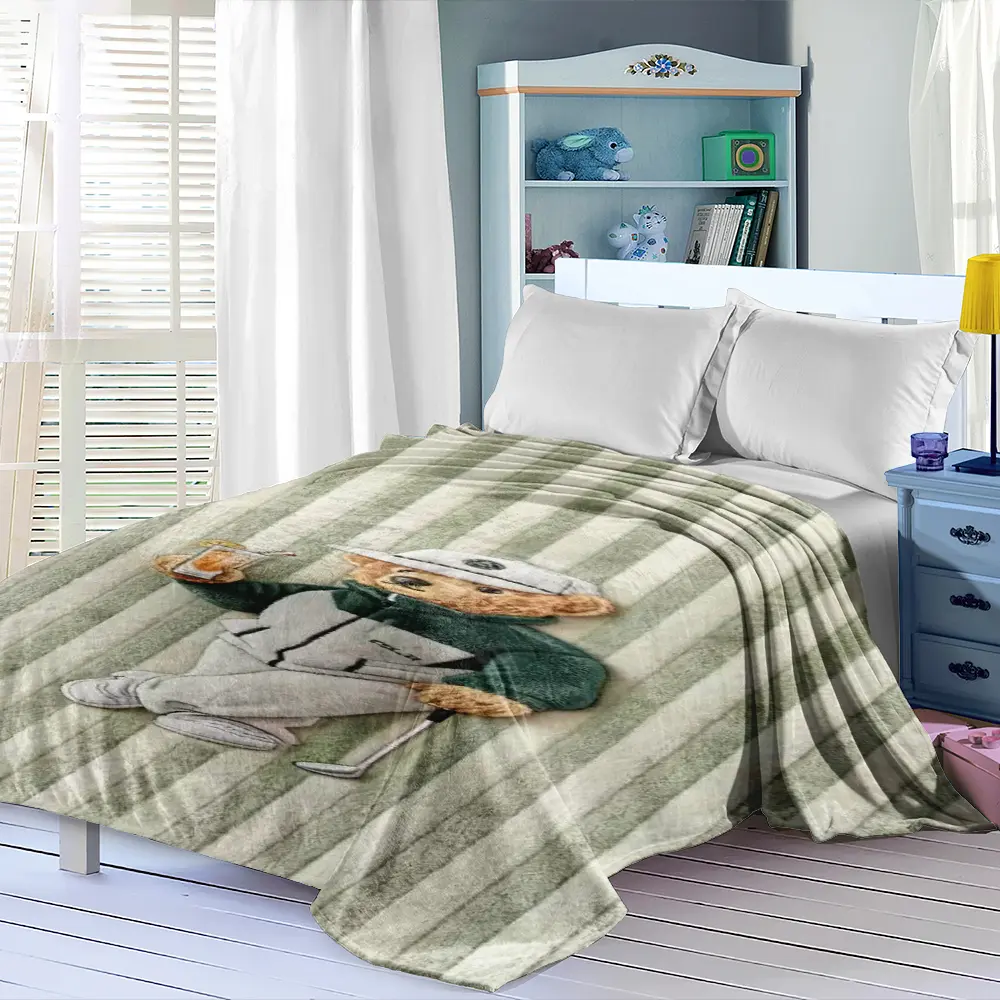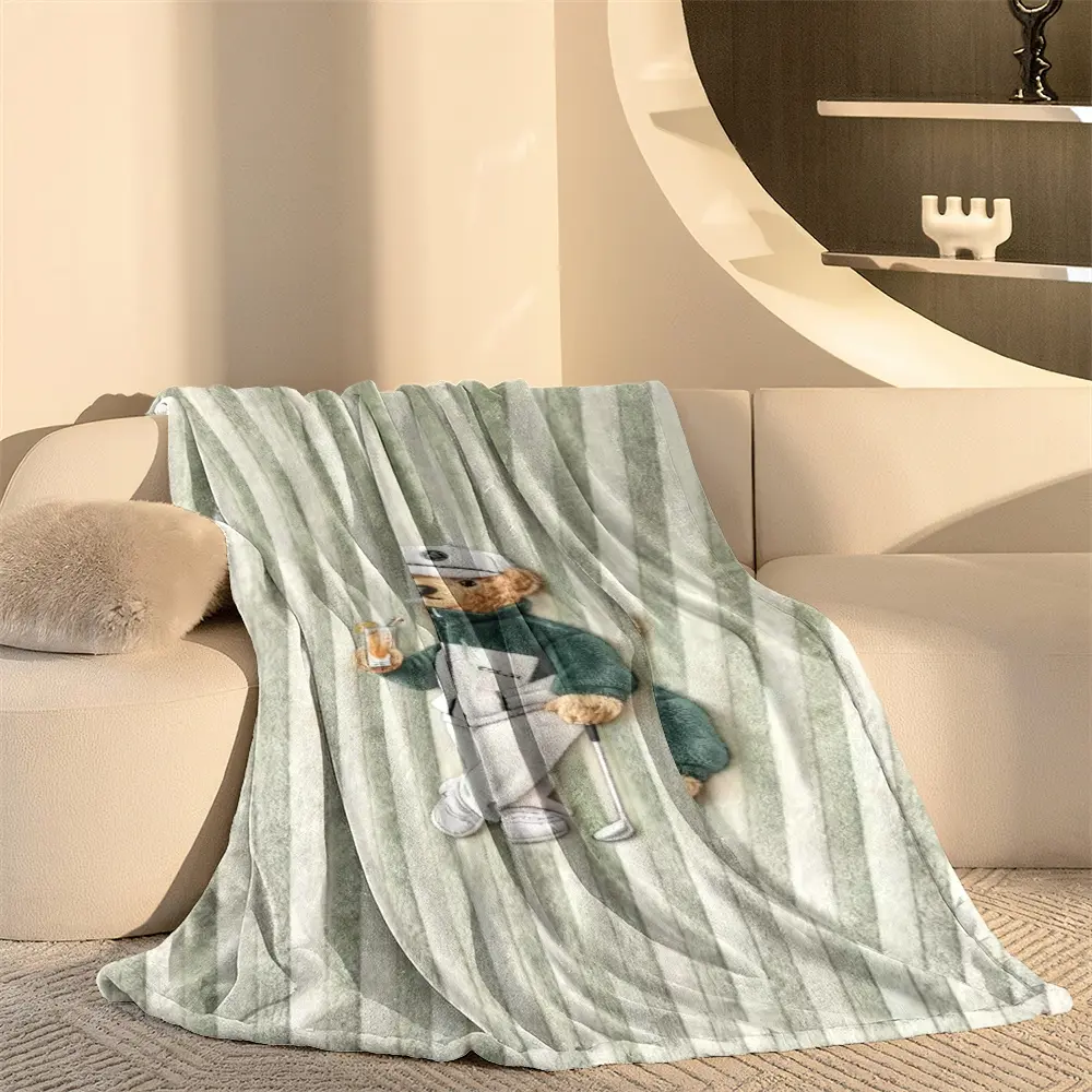 【Bear Pattern Design】: Features a trendy bear graphic, adding a unique and playful element compared to standard blankets.
