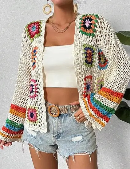 ·Style: Casual loose fit trendy vintage hollow out boho crochet cardigans
