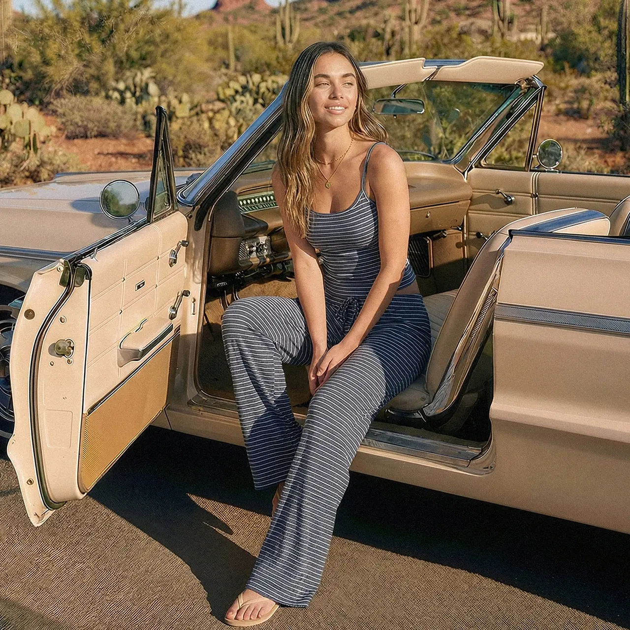 This lounge set is ideal for relaxing at home. The stripes and comfortable design make it a great choice for everyday wear. Enjoy effortless style and comfort.