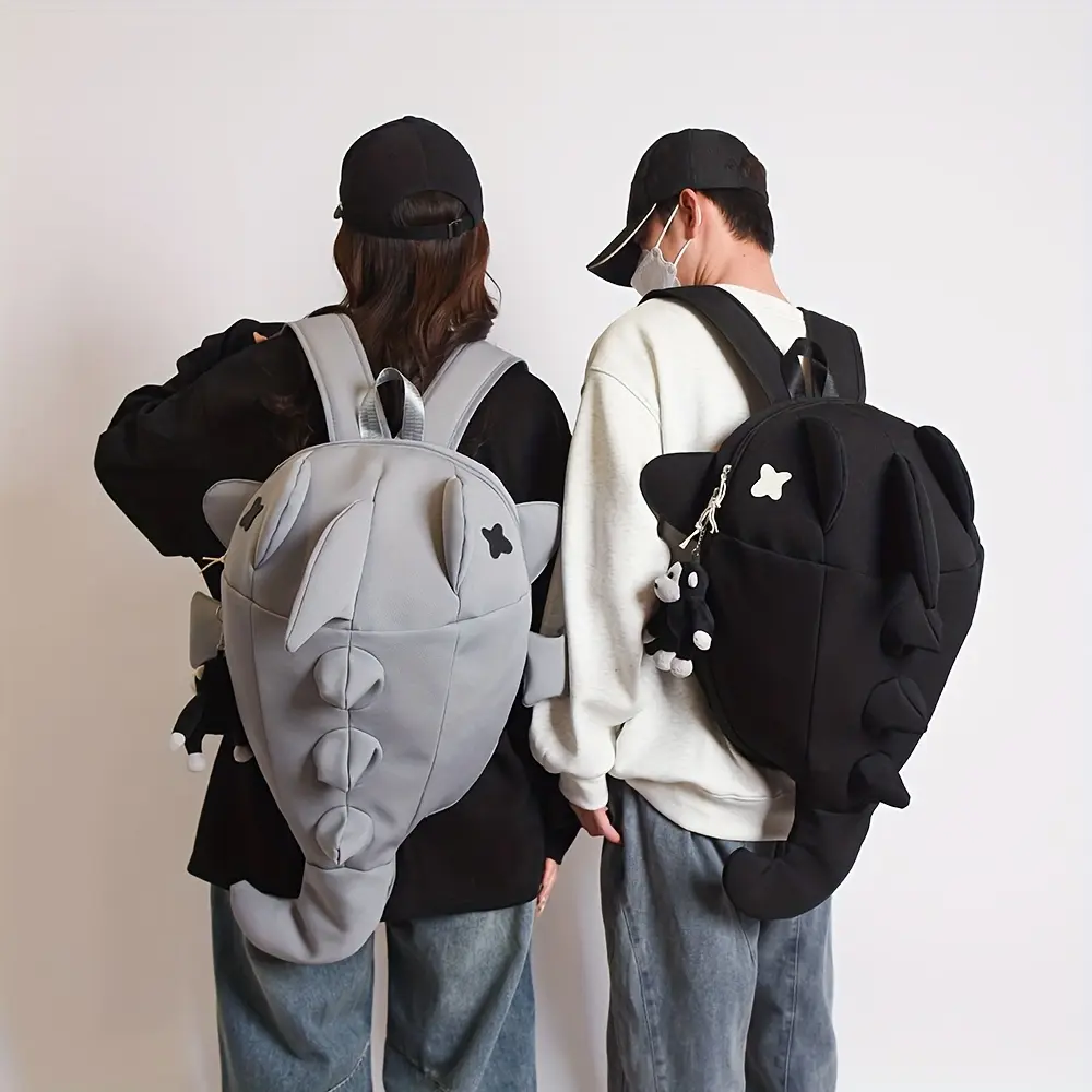 This backpack features a trendy shark design, perfect for students and fashion enthusiasts. It's a playful, funny, and cute choice for daily use. Ideal for travel, motorcycle rides, and casual outings. The backpack embodies a Korean version style, making it a standout accessory.
