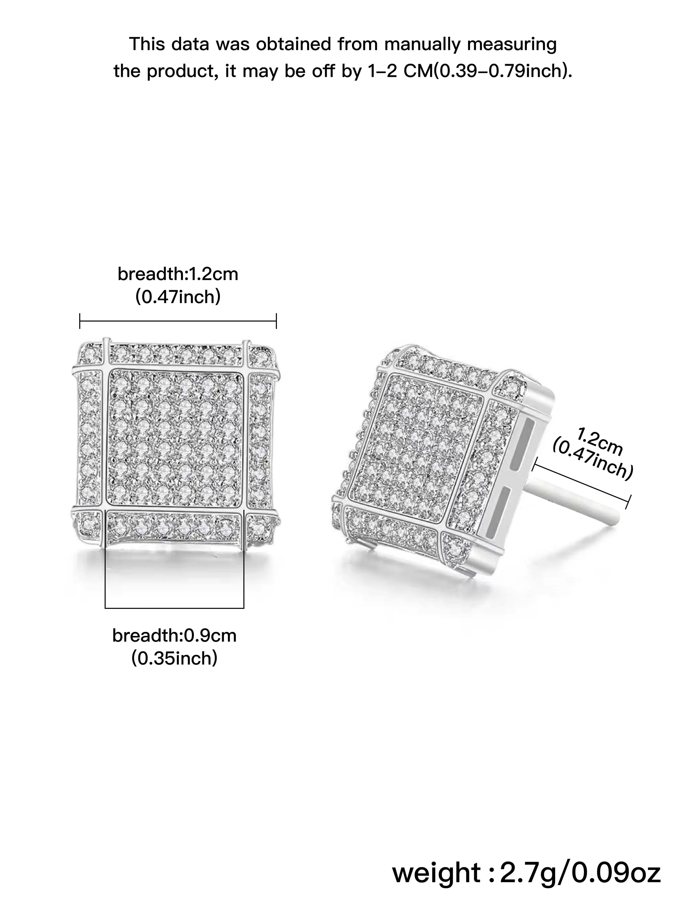 Hip-hop zircon square earrings for men and women y2k jewelry party jewelry couple gifts