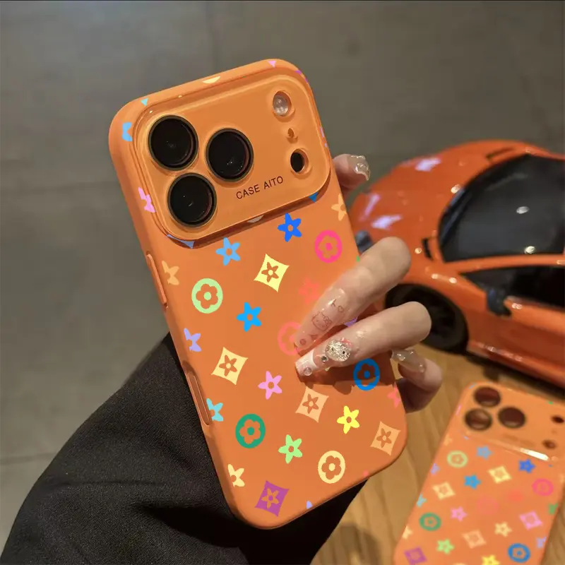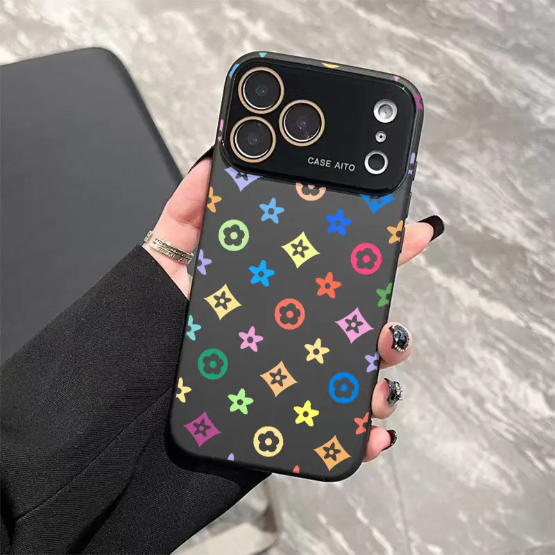 Trendy unique colorful Monogram Pattern Solid Color Phone Case with Ultra Skin friendly Touch, All Inclusive Lens Phone Case Suitable for Apple 17 16 15 14 13 12