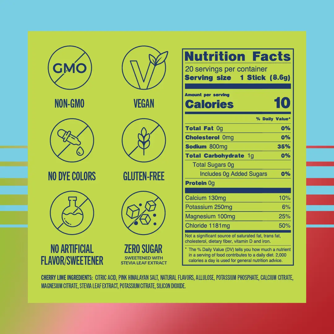 20 Cherry Lime flavored stick packs included