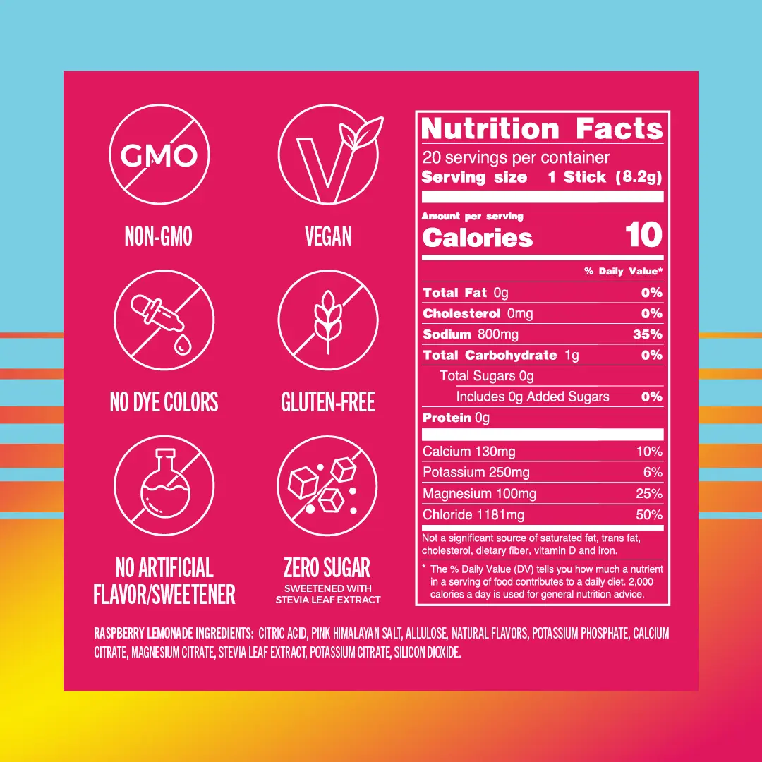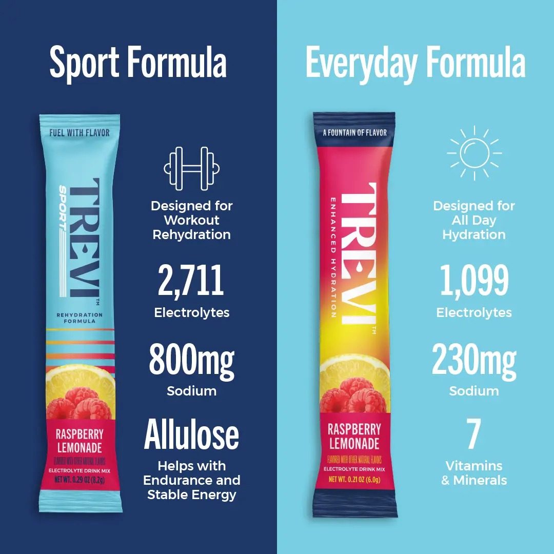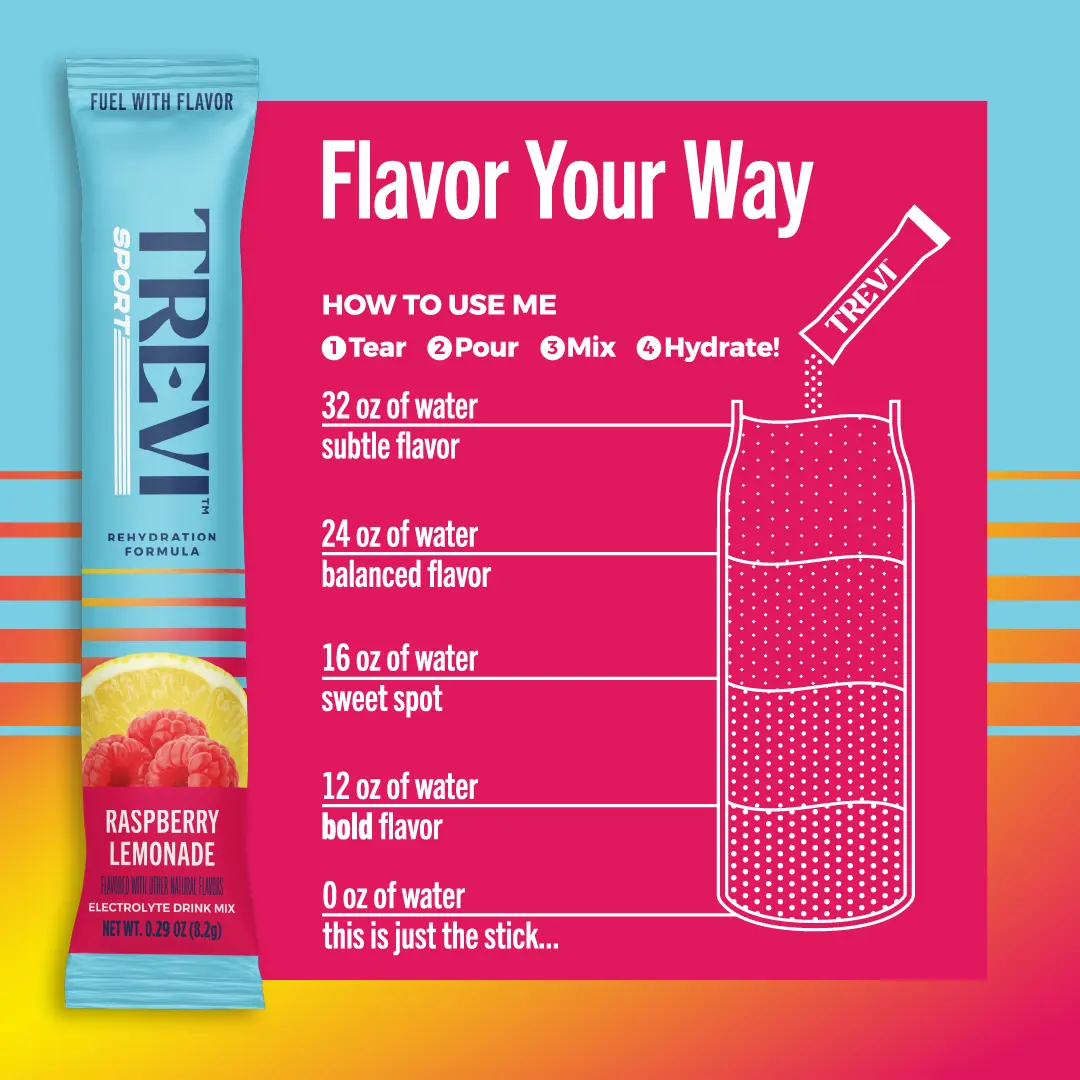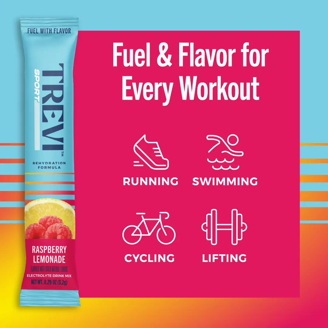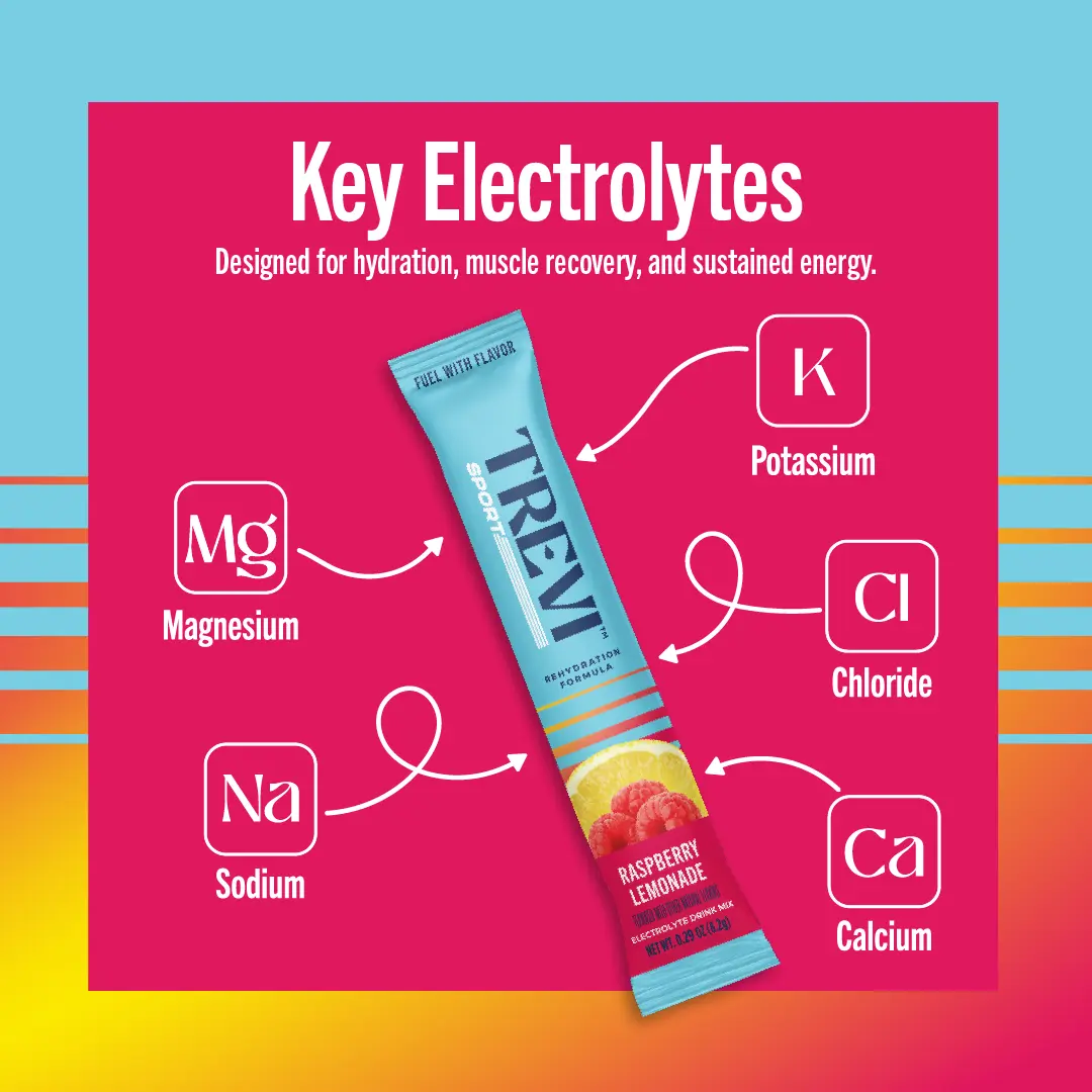 TREVI Sport Sugar Free Electrolytes - Rehydration Powder Packet Drink Mix - 20 Count - Raspberry Lemonade