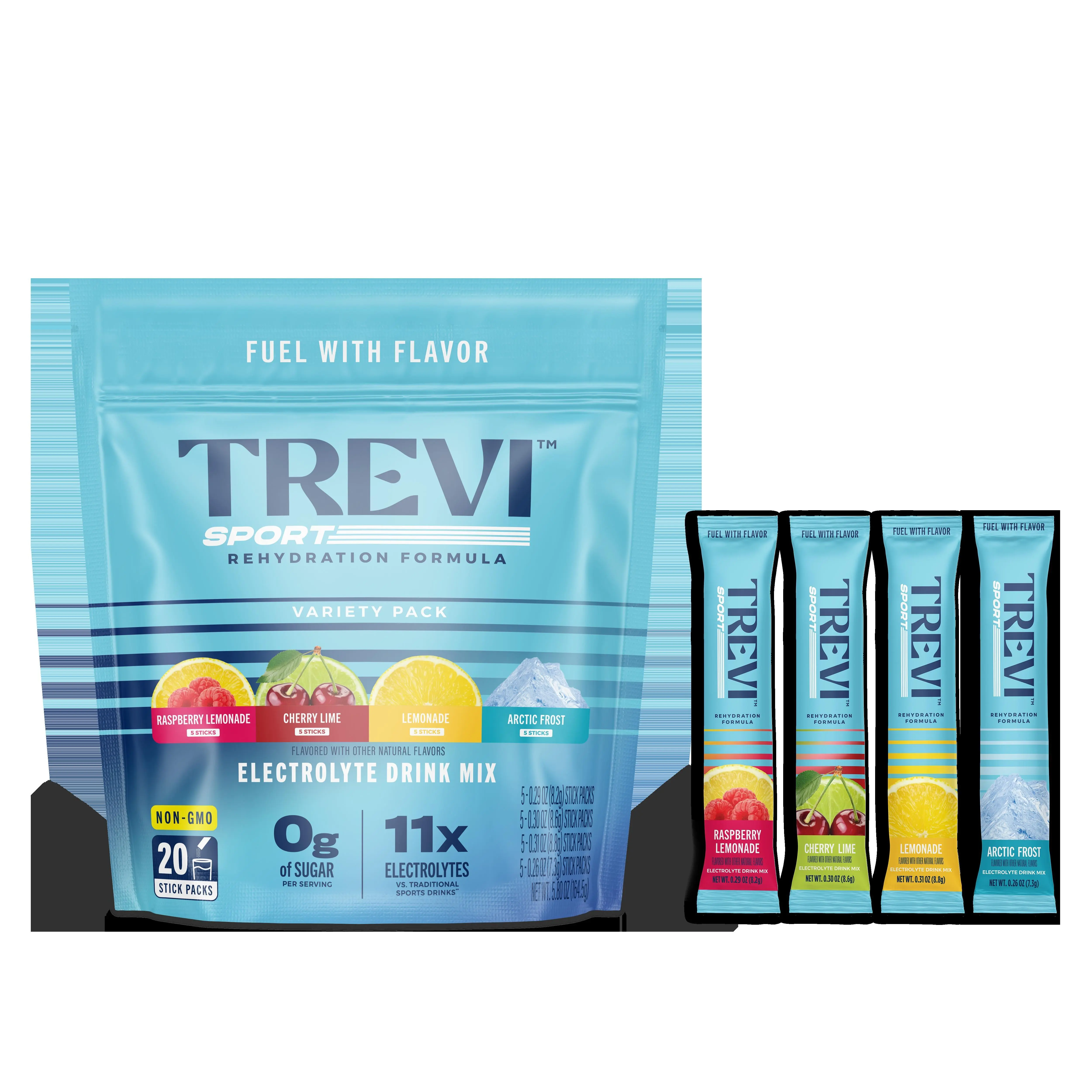 5. TREVI Sport Sugar Free Electrolytes - Rehydration Powder Packet Drink Mix - 20 Count / 8 Count - Variety Pack
