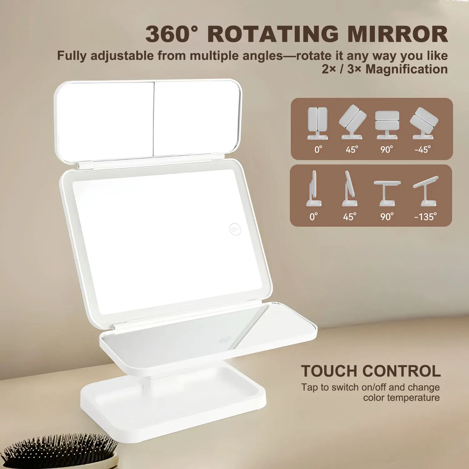·Multi-Angle Rotation: The mirror offers 180° rotation, allowing for versatile viewing angles. This feature enhances makeup accuracy, ensuring a precise application every time. 🔄